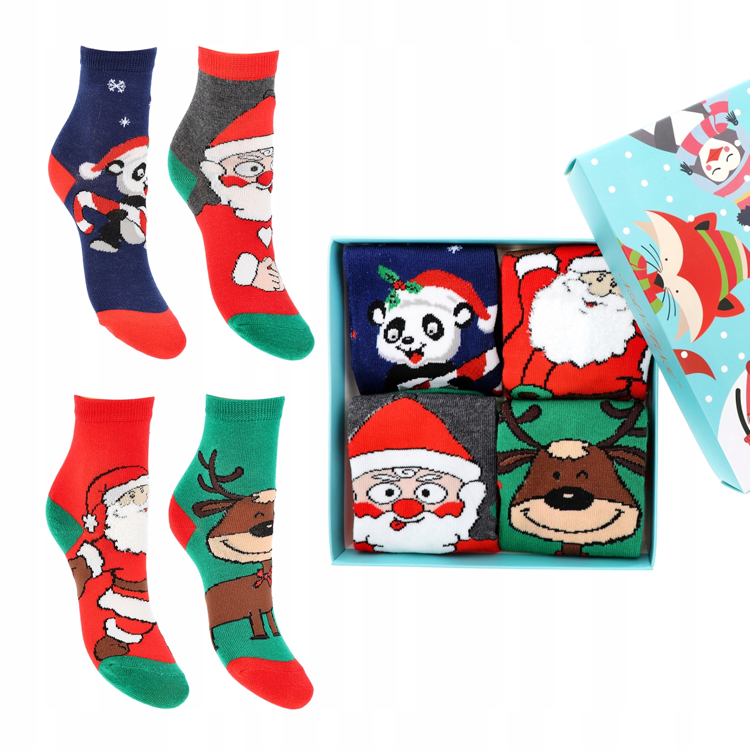- Четыре пары носков с различными рождественскими узорами