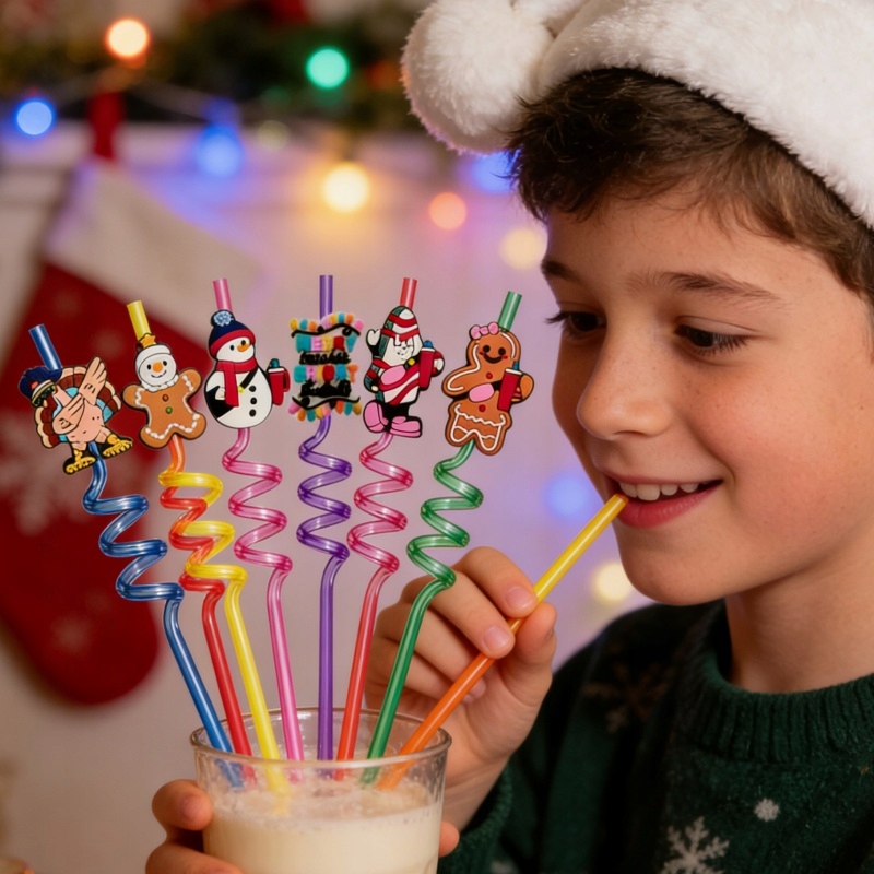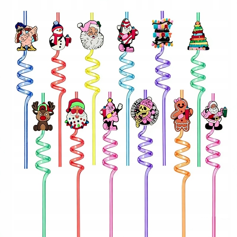 Многоразовые фигурные новогодние соломинки для детей, 12 шт.