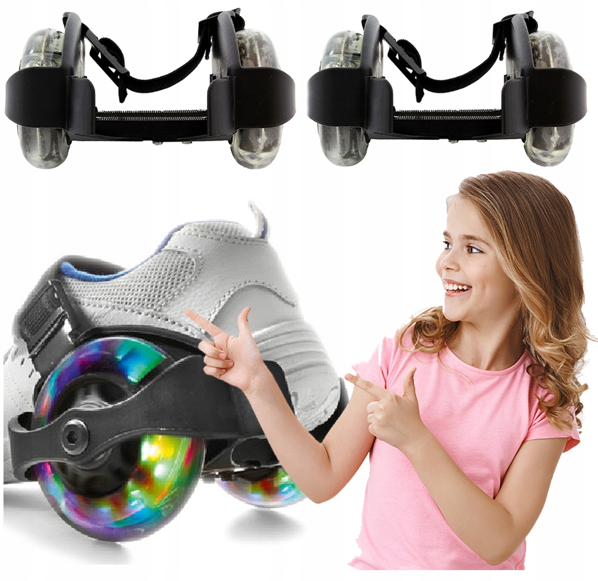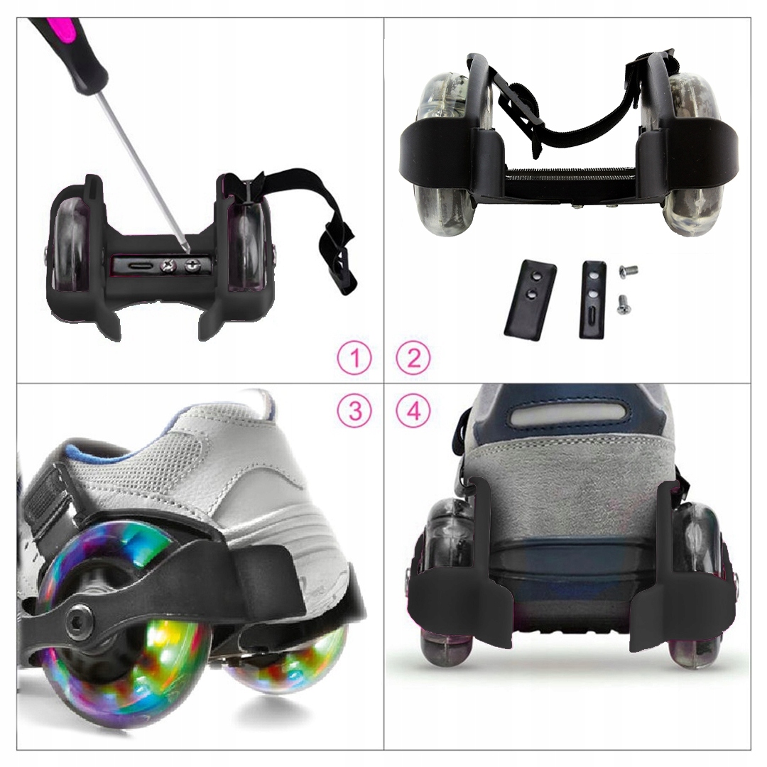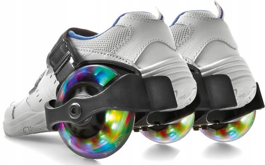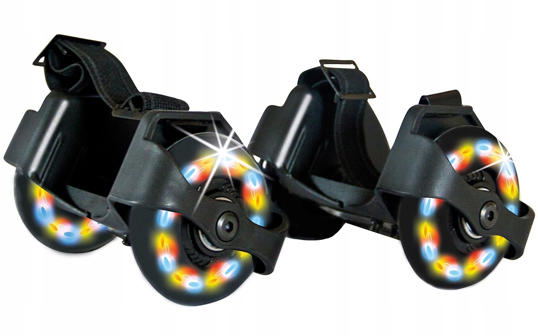 Просто отрегулируйте ширину роликов обуви и закрепите их с помощью резинки со специальной пряжкой! Колеса начинают эффектно светиться, как только их откручиваешь. Они не требуют дополнительных источников питания!