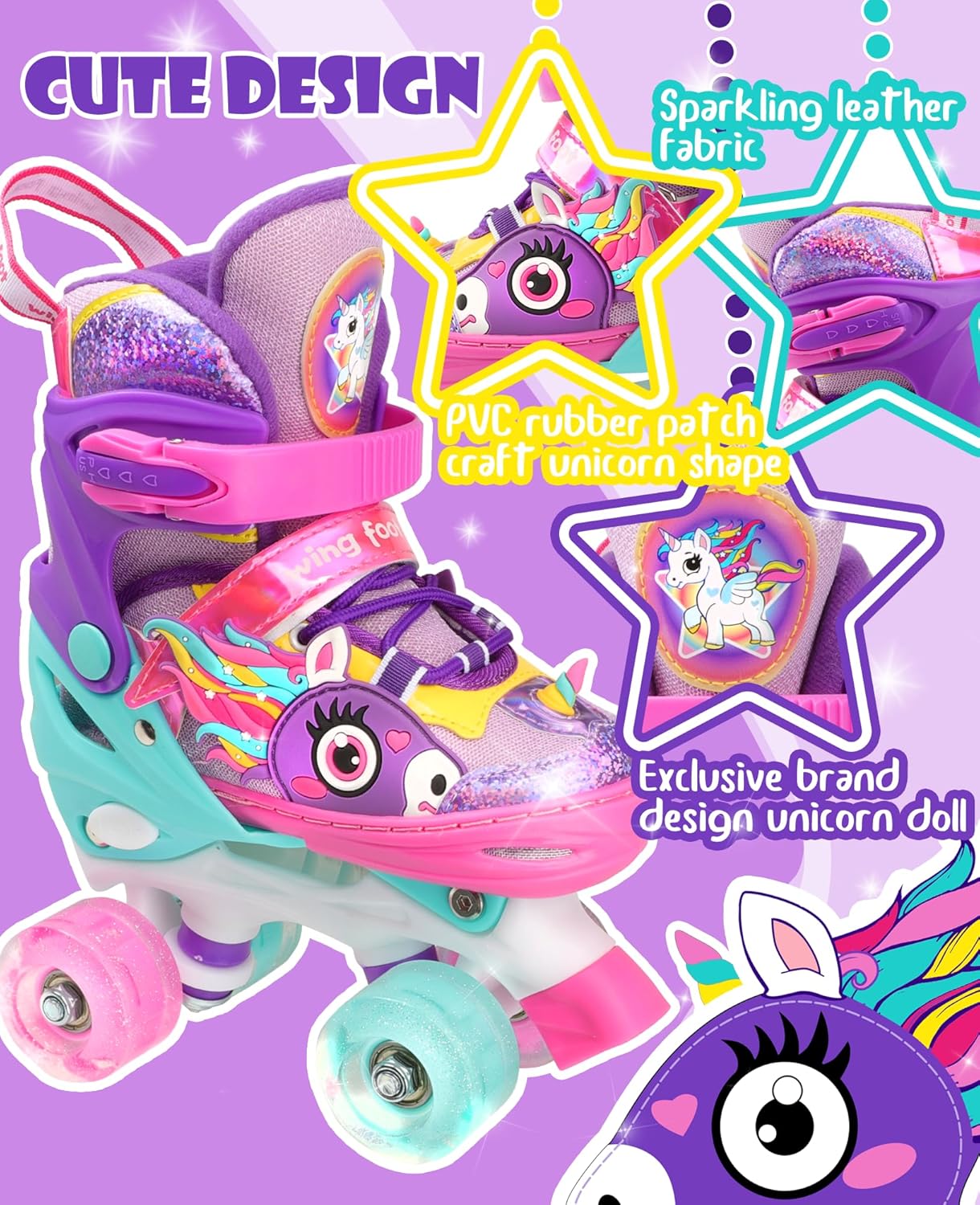 【Weskifan, тщательно спроектированный для девочек】 Wrotki Wrotki Wrotki Wrotki, украшенный очаровательным розовым единорогом, который выглядит красиво и весело.