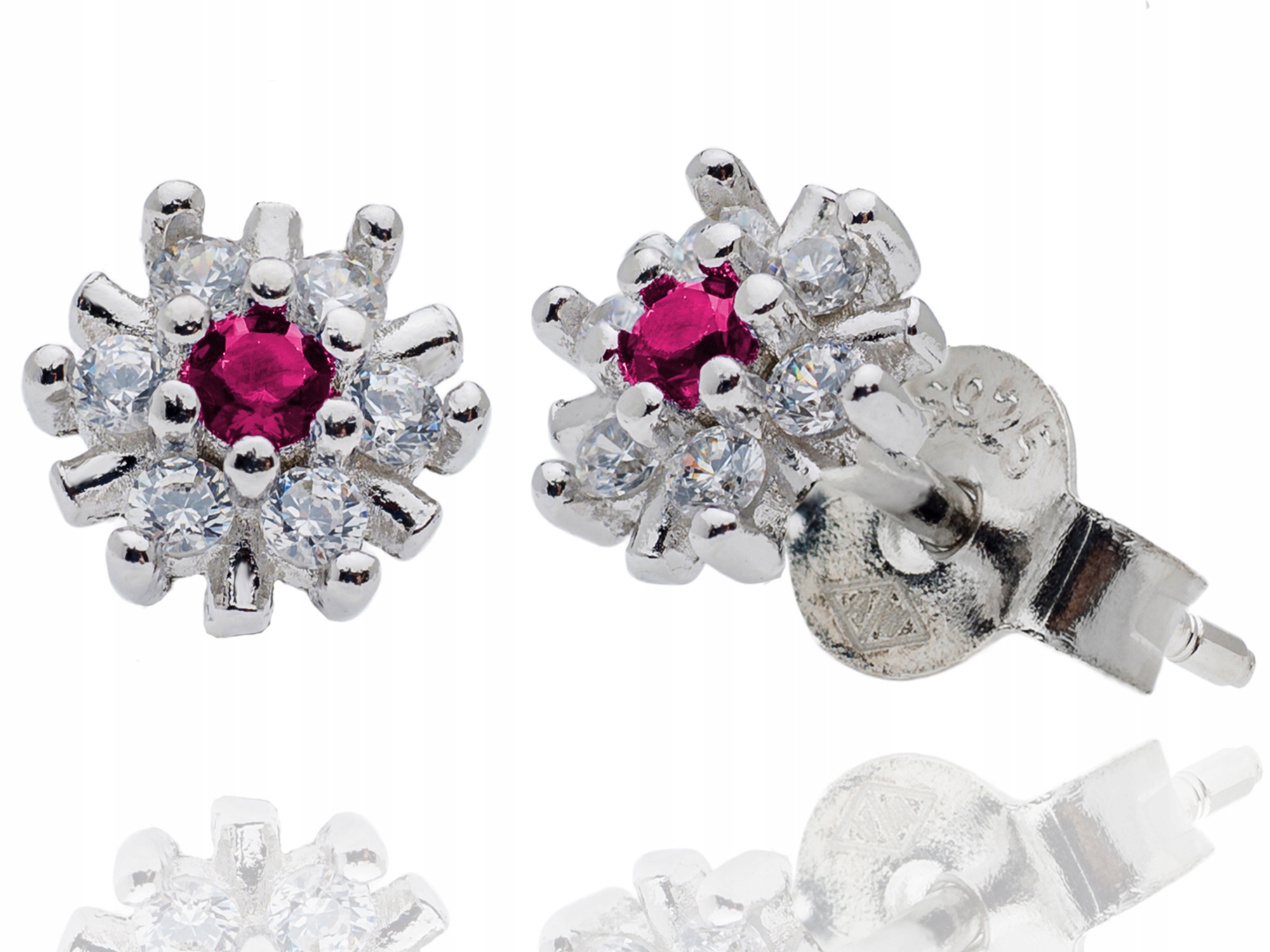 Серьги из серебра 925 пробы с цирконами белого цвета и фуксии