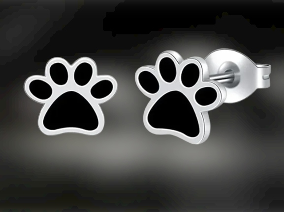 Дитячі сережки з собачих лапок, сріблясто-чорні шпильки, красиві