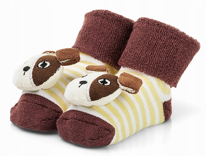 RATTLE — хлопчатобумажные носки, внутри которых над пальцами ног спрятана погремушка в виде милой собачки. Теплые носки из плотного хлопка – идеальный выбор для холодных дней. Они обязательно вызовут улыбку на лице вашего малыша.