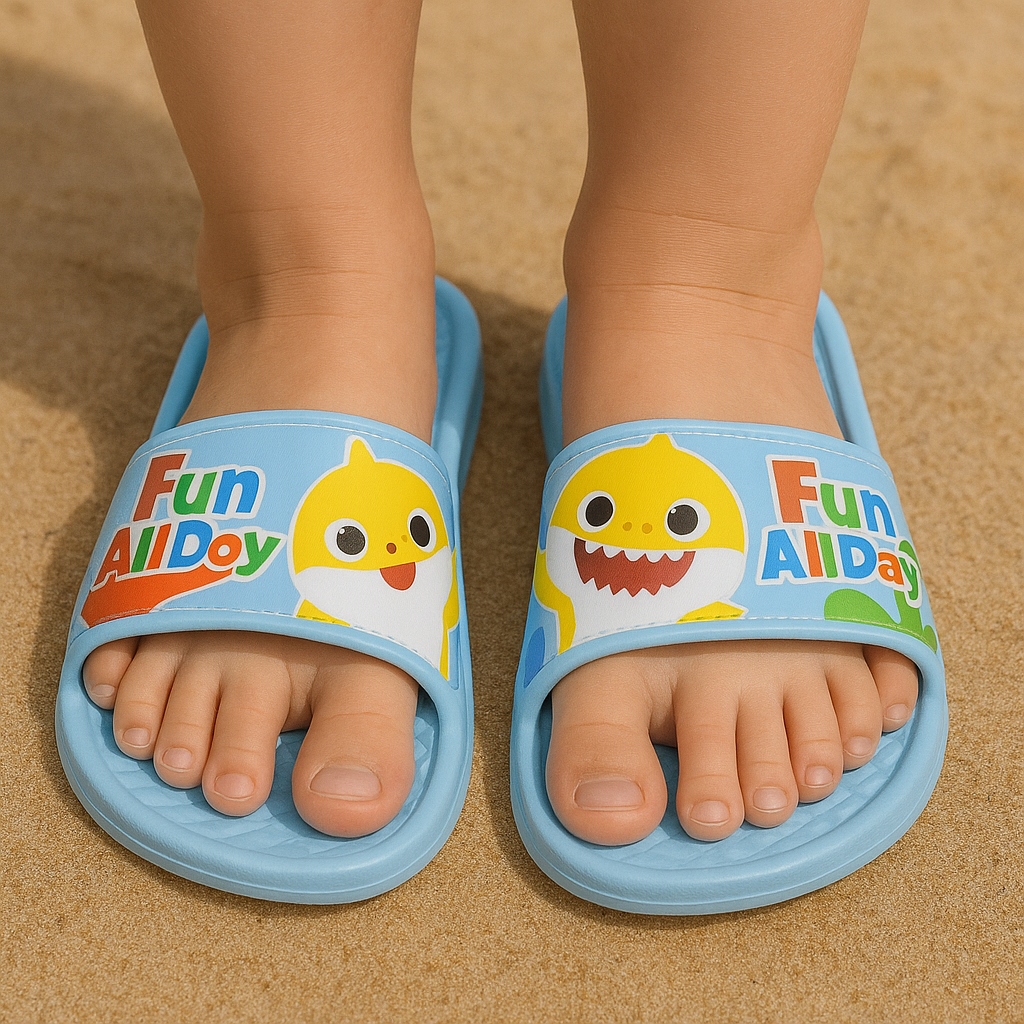 ☀️Уникальный дизайн шлепанцев изображает на каждой из них милого персонажа Малыша Акулу, а это значит, что малыши будут в восторге от каждого шага. ✨