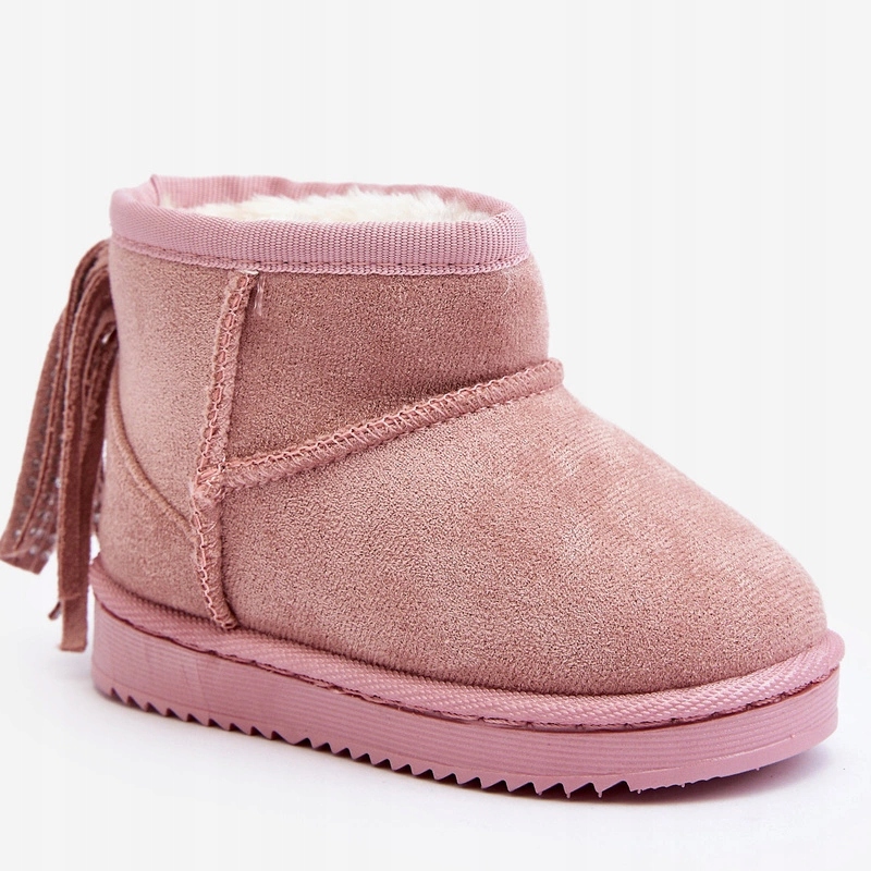 Детские снежные ботинки, сделанные из эко -замши. Интерьер изолирован с толстым мехом, который защитит вашего ребенка от холода. Меттер на резиновой пластиковой подошве. Задняя часть верхнего украшения с бахромой. Эта модель обязательно должна быть в гардеробе вашего малыша! При выборе размера, пожалуйста, направьте таблицу размеров.