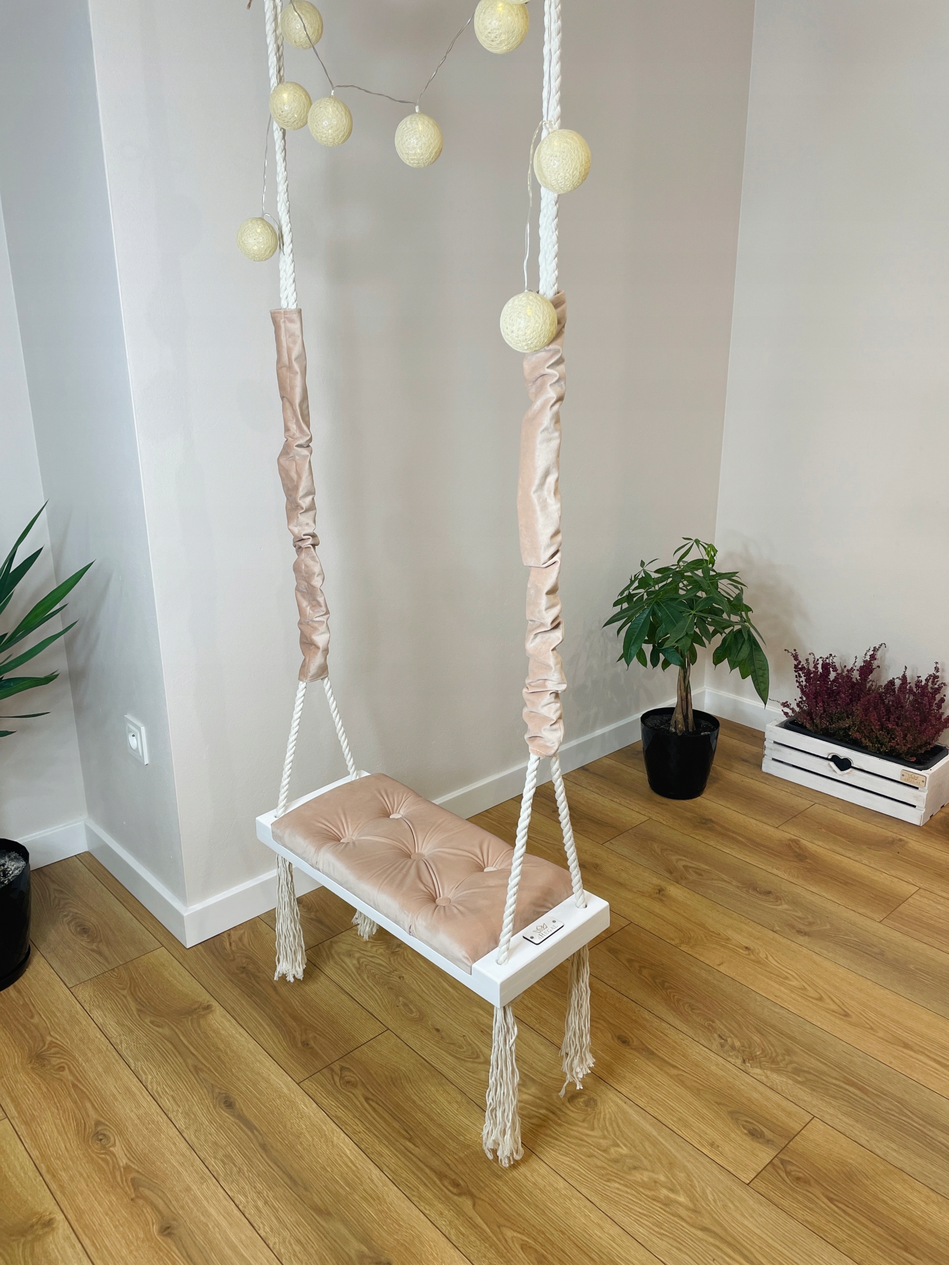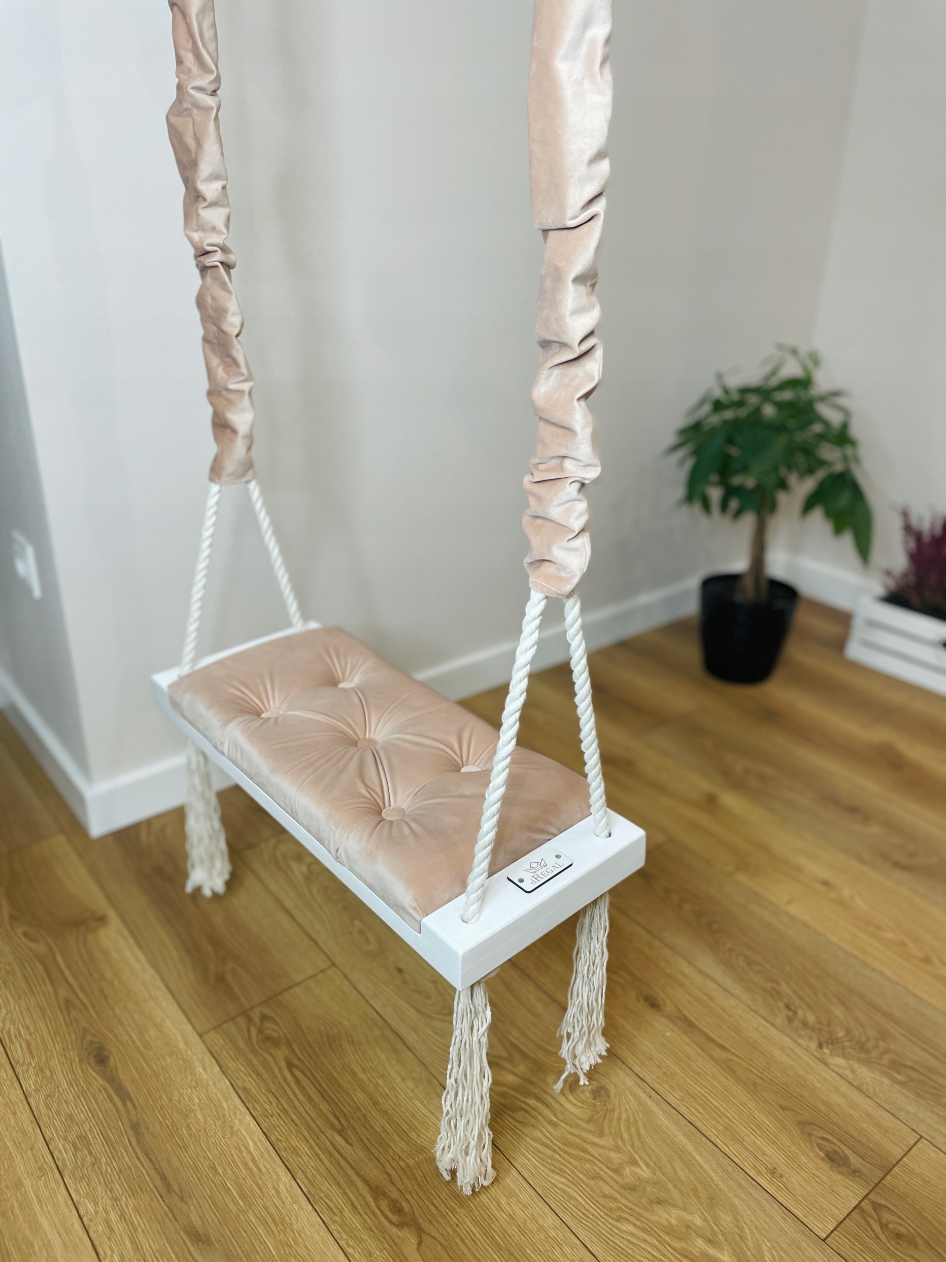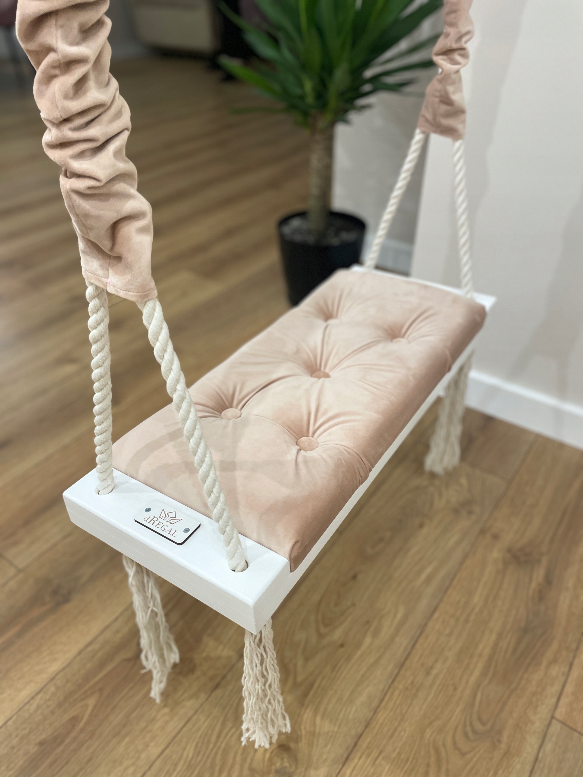Обитые деревянные качели для детей в цвете «порошко-розовый» dregal