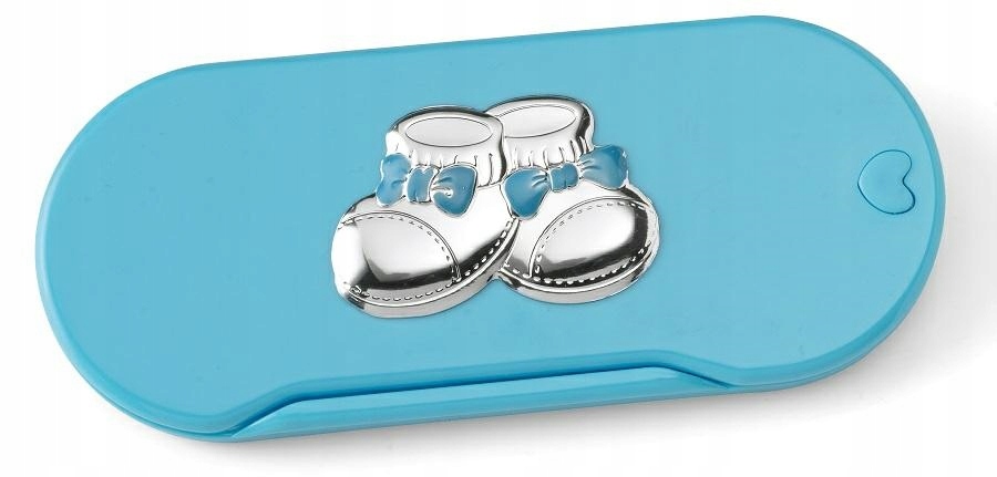 Синие детские столовые приборы из пластика, украшенные серебряной эмблемой в виде туфельки. В комплект входит вилка, ложка и практичный чехол. Все упаковано в оригинальную коробку производителя.