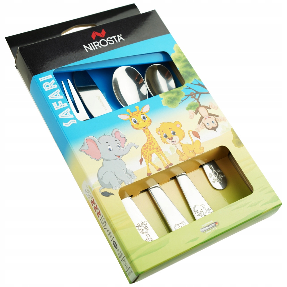 Набор столовых приборов детский НИРОСТА Сафари: вилка, нож, ложка и чайная ложка
