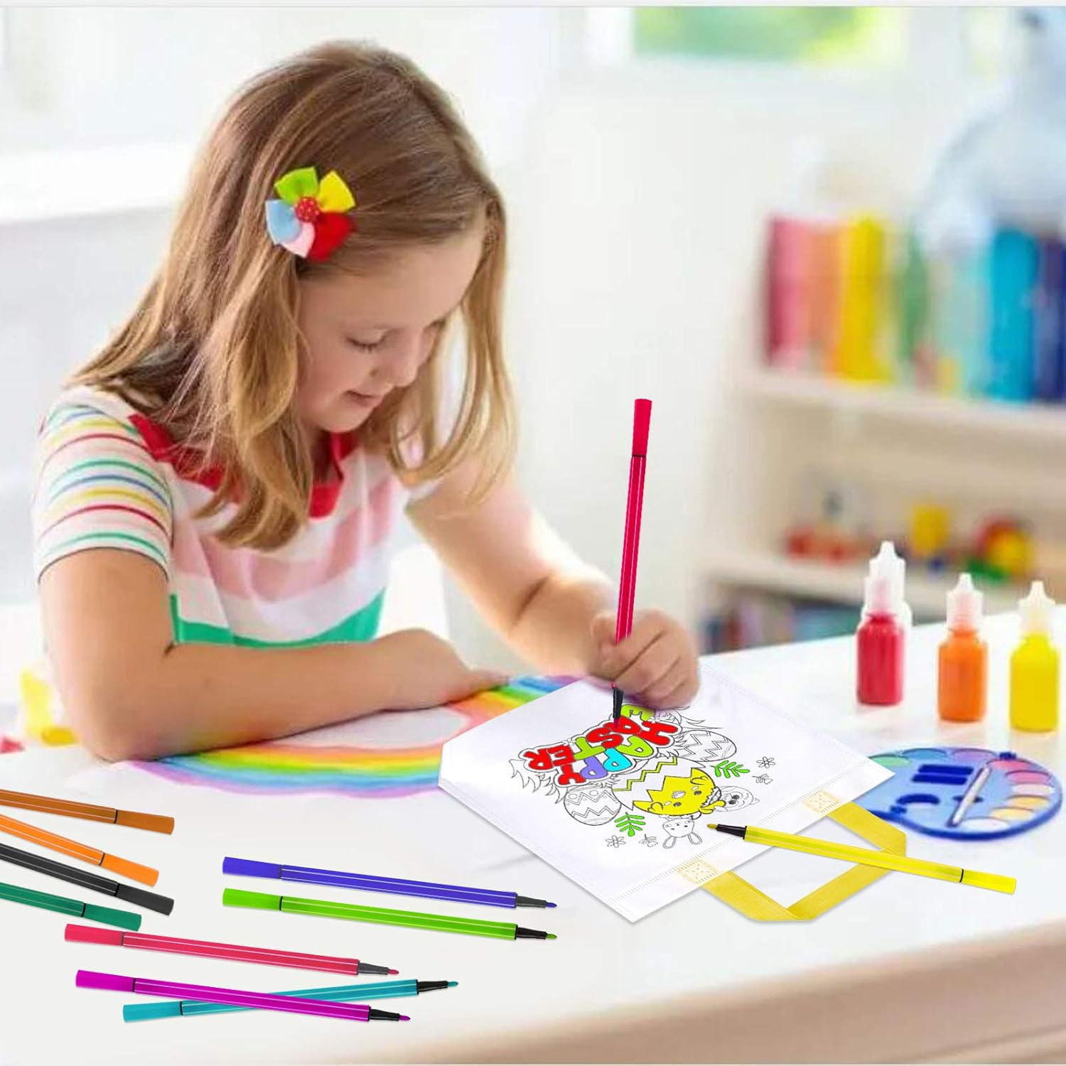 Детские сумочки для покраски 12 шт. + 12 Фетроводов -TIP -ручки Благодаря чистым и простым пустым мешкам, вы и ваши дети можете создавать свои собственные фотографии, рисунки и проявлять творчество.