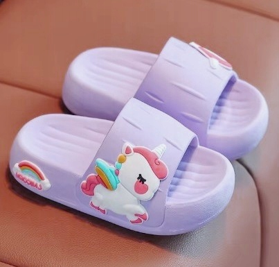 ➕ Представляем фантастические детские тапочки на толстой платформе, идеально подходящие для летних дней, полных веселья! Наши фиолетовые шлепанцы с очаровательным мотивом единорога порадуют каждого ребенка и добавят стиль в любой летний образ.