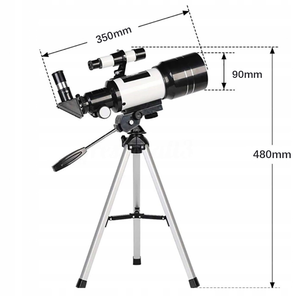 В комплект входит телескоп с диаметром объектива 70 мм и фокусным расстоянием 300 мм.