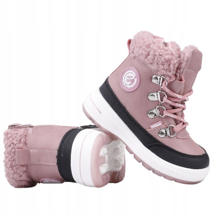 Детские ботильоны на толстой подошве и протекторе, застегивающиеся на молнию. Верх длиной до щиколотки. Круглый нос. Дополнительная шнуровка спереди позволяет точно подогнать обувь по ноге. Изготовлен из экокожи. Сильно утеплен изнутри имитацией дубленки. Они идеальны для длительных поездок или прогулок в морозные дни.
