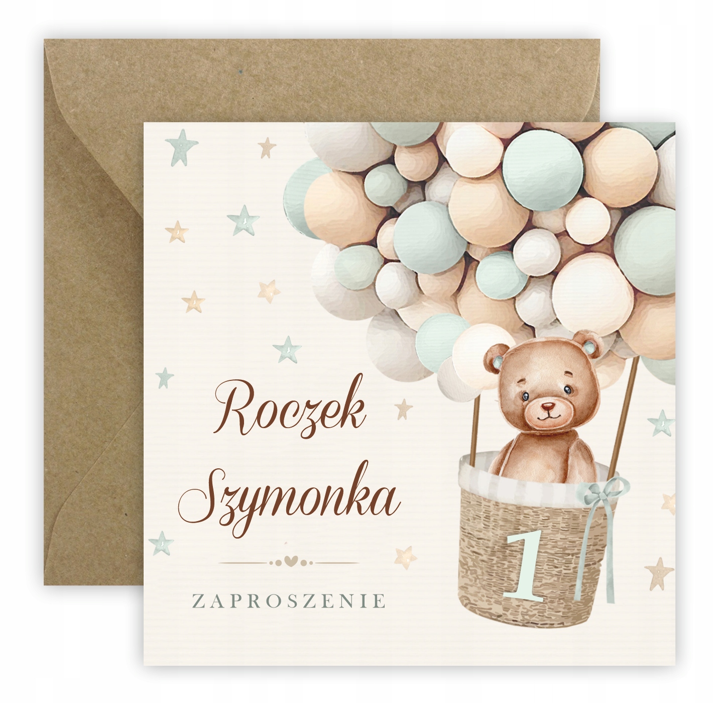 ПРИГЛАШЕНИЯ ДЛЯ ДЕТЕЙ + ИМЯ + КОНВЕРТ МЕДВЕДЯ БОХО