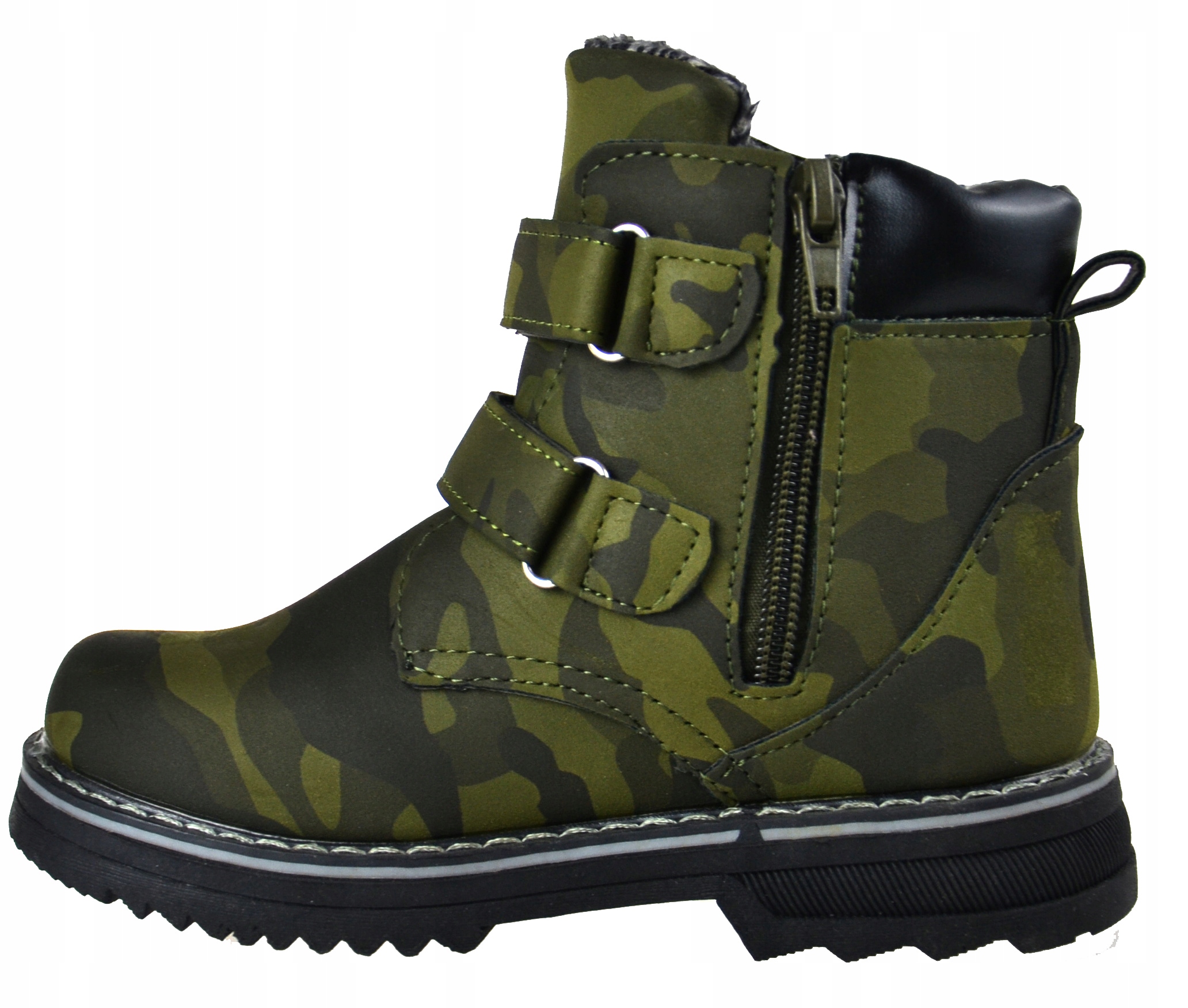 Сапожки детские зимние, на плоской подошве. Красивые камуфляжные ботильоны в 3-х цветах: черном, зеленом и синем. На других аукционах. Застежка-молния и дополнительная липучка облегчают надевание. Туфли имеют противоскользящую резиновую подошву с протектором. Они хорошо держат ногу и адаптируются к любой ноге. Туфли имеют утеплитель по всей длине.