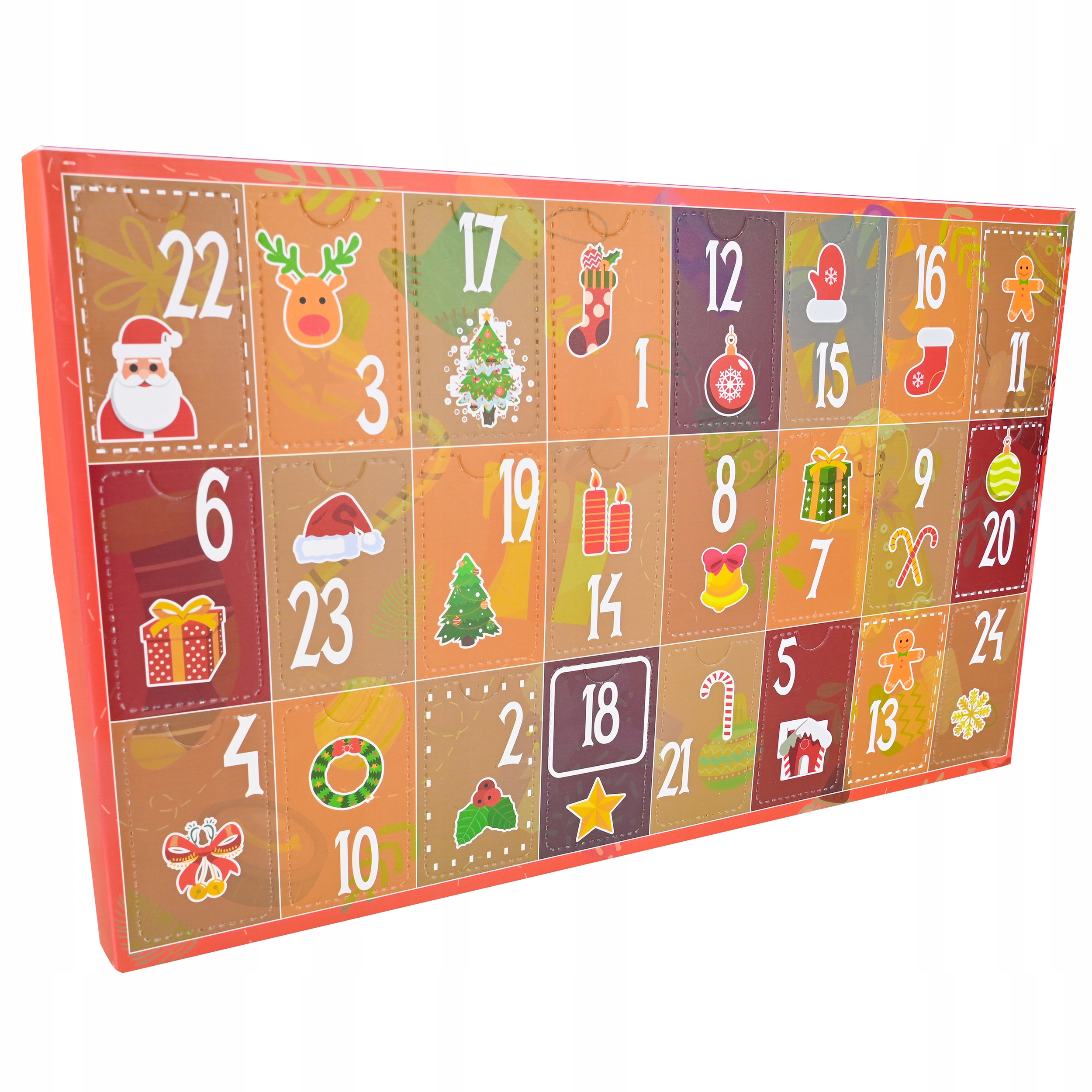 Каждый элемент выполнен эстетично, с типично рождественскими мотивами, что делает календарь универсальным дополнением к любому интерьеру.