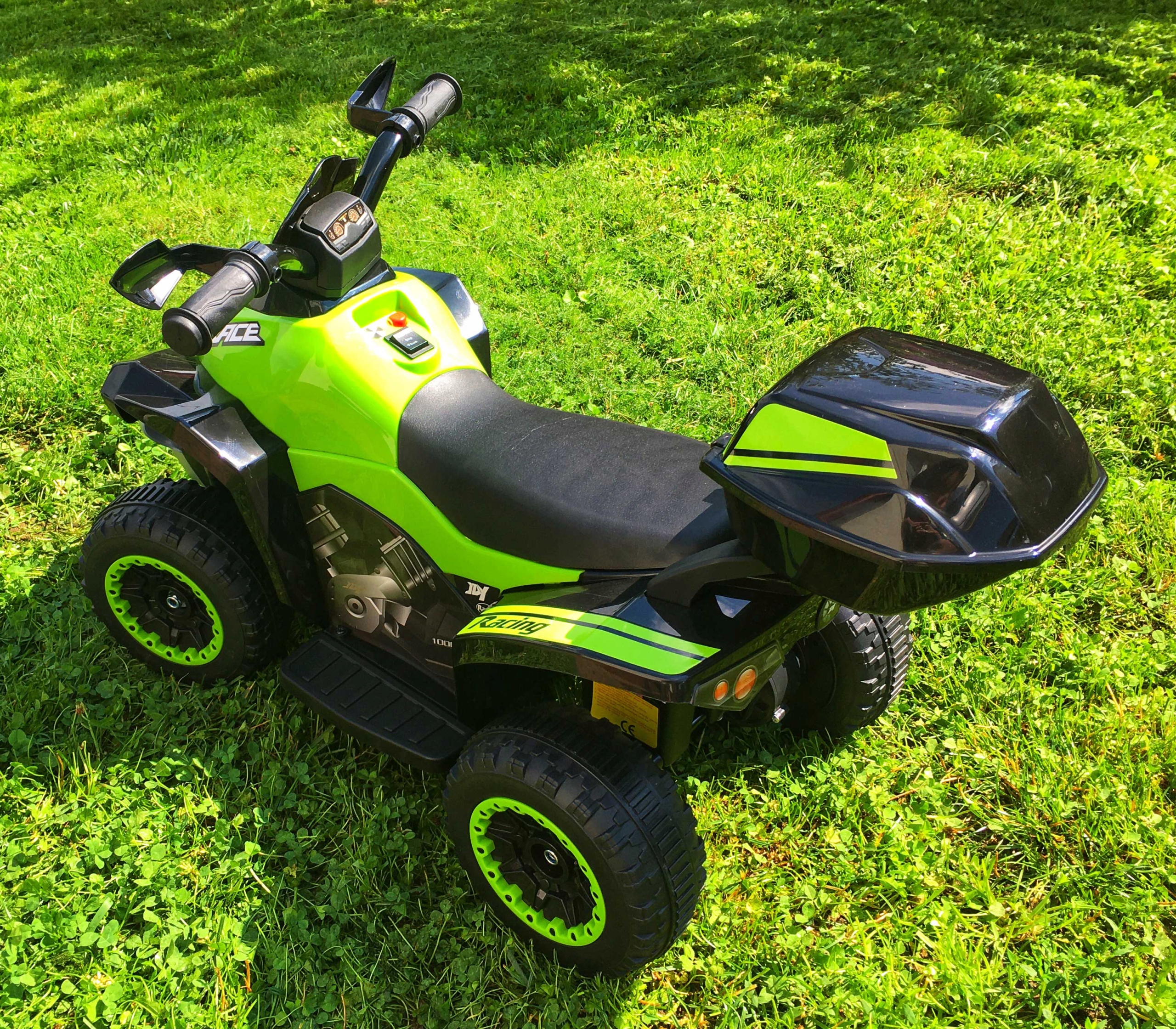 - Квадроцикл очень легко собрать — все, что требуется, — это около 25 минут сотрудничества юного водителя со взрослым и автомобилем. готов к вождению.