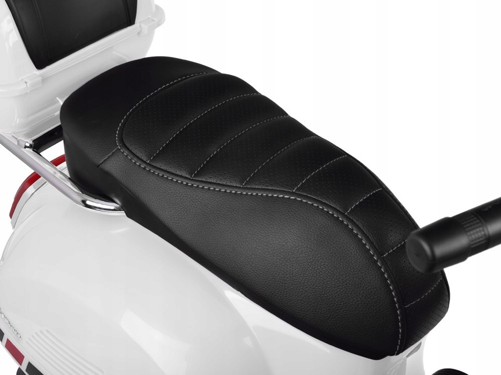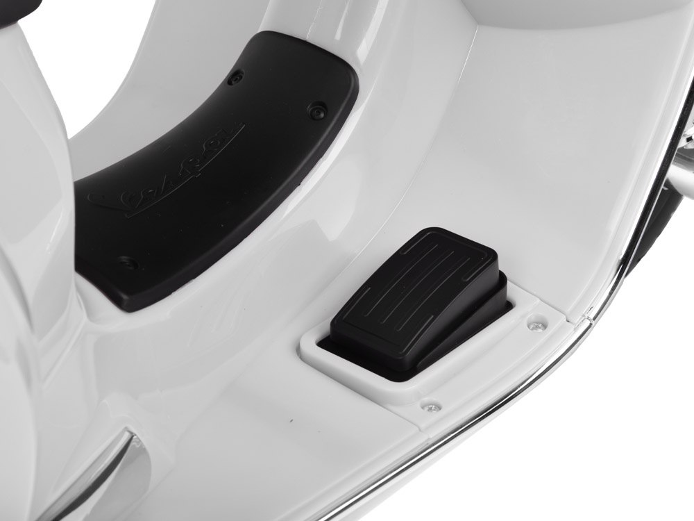 Vespa GTS был тщательно усовершенствован. Удобное седло, обтянутое эко-кожей, повышает комфорт езды. Эргономичные ручки с нескользящим тиснением позволят ребенку уверенно управлять транспортным средством. Для обеспечения безопасности ребенка автомобиль оснащен боковыми колесами, которые гарантируют устойчивость во время движения. Кроме того, у Vespa есть электрический тормоз, который срабатывает, когда вы убираете ногу с педали газа.