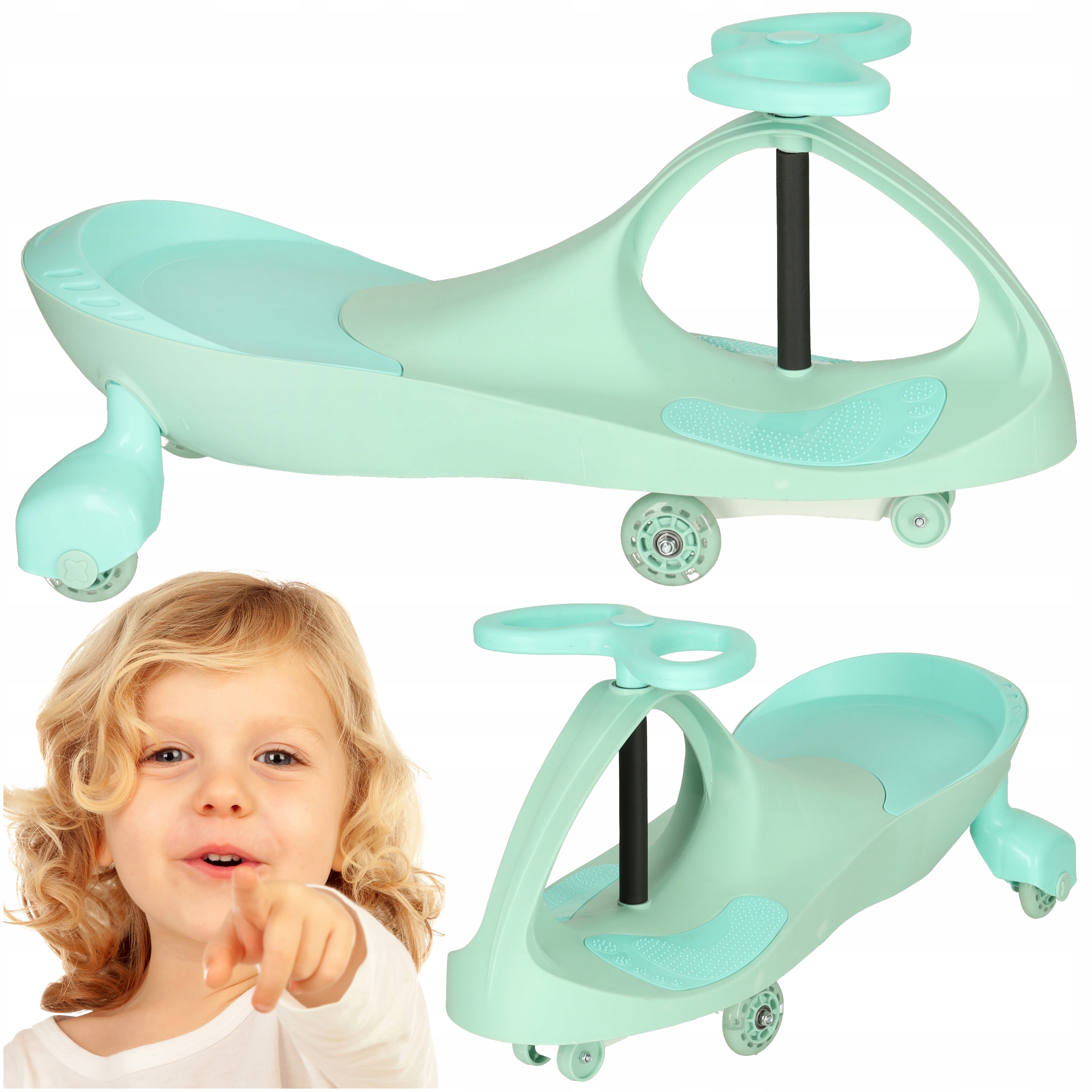 ДЕТСКАЯ АВТОМОБИЛЬ-КАЧКА С ГРАВИТАЦИОННОЙ ПОЕЗДКОЙ СО СВЕТЯЩИМИСЯ СВЕТОДИОДНЫМИ КОЛЕСАМИ 80 КГ