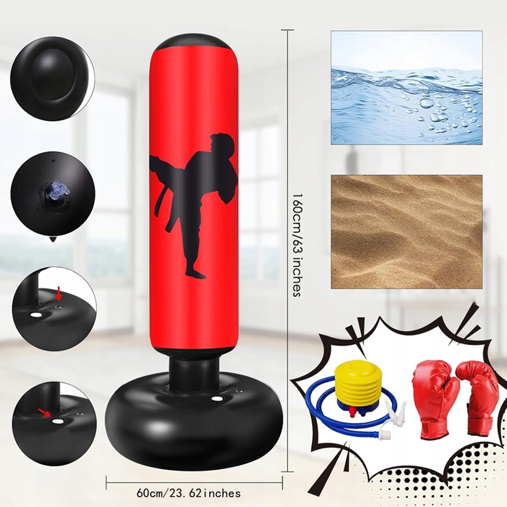 - Наша детская боксерская груша имеет три независимые воздушные камеры, устойчивое основание и эффективную защиту от протекания. В большое основание можно наполнить воду или песок, а крышка с двойным уплотнением обеспечивает надежное закрытие перед добавлением воды.