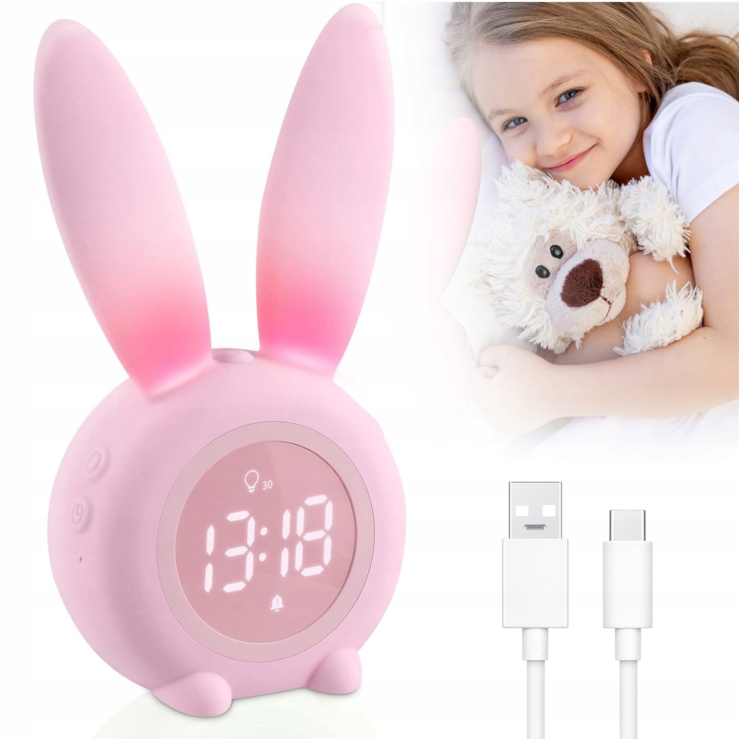 ДЕТСКИЙ БУДИЛЬНИК ЛАМПА КРОЛИК ЧАСЫ ЗАЙЧИК ДЛЯ ДЕТЕЙ ДЛЯ СПАЛЬНИ С РЕГУЛИРУЕМОЙ СВЕТОДИОДНОЙ ЗАРЯДКОЙ