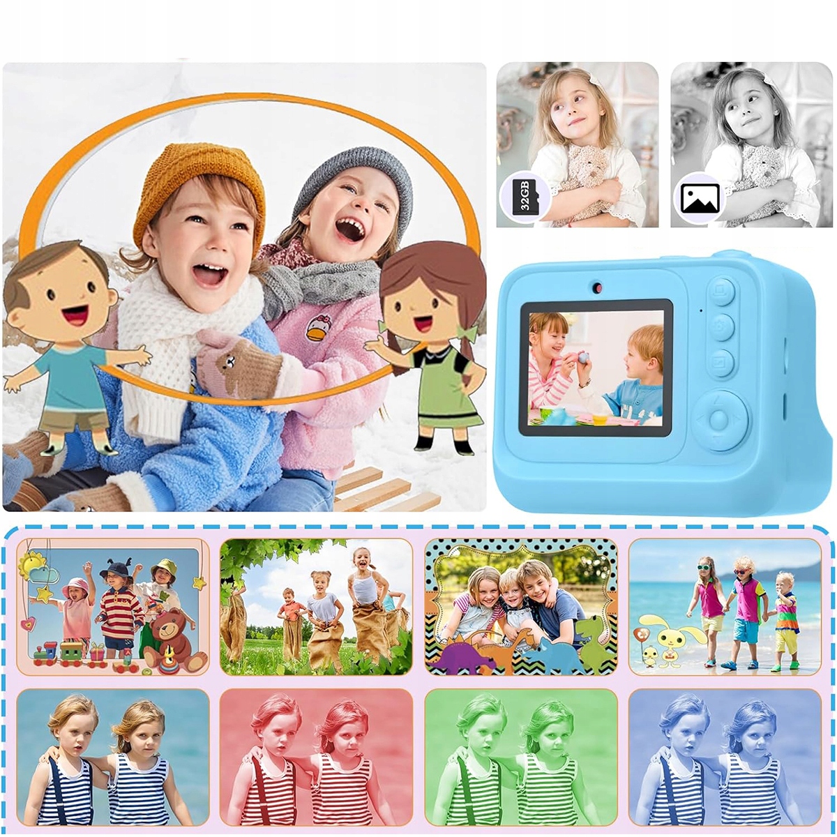 ✔️Универсальная цифровая камера для детей: мгновенная печать, большой экран 2,4 дюйма, запись видео 1080P, 16-кратный цифровой зум, карта памяти емкостью 32 ГБ, замедленная съемка, серийный режим, 4 игры, 6 фильтров, 8 кадров и музыка. Она отвечает различным потребностям детей и является идеальным компаньоном для их счастливого развития. Сохраните драгоценные моменты и создайте прекрасные воспоминания для себя и своей семьи.