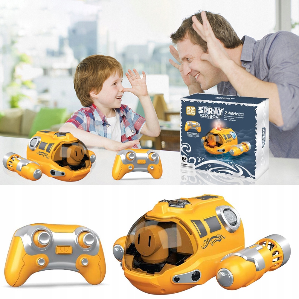 🏊 Детскую дистанционную лодку с дистанционным управлением, 2,4 ГГц, водонепроницаемый, с двойным винтом, с душем, светом и вращением 360 °, летняя игрушка для водных вечеринок для детей.
