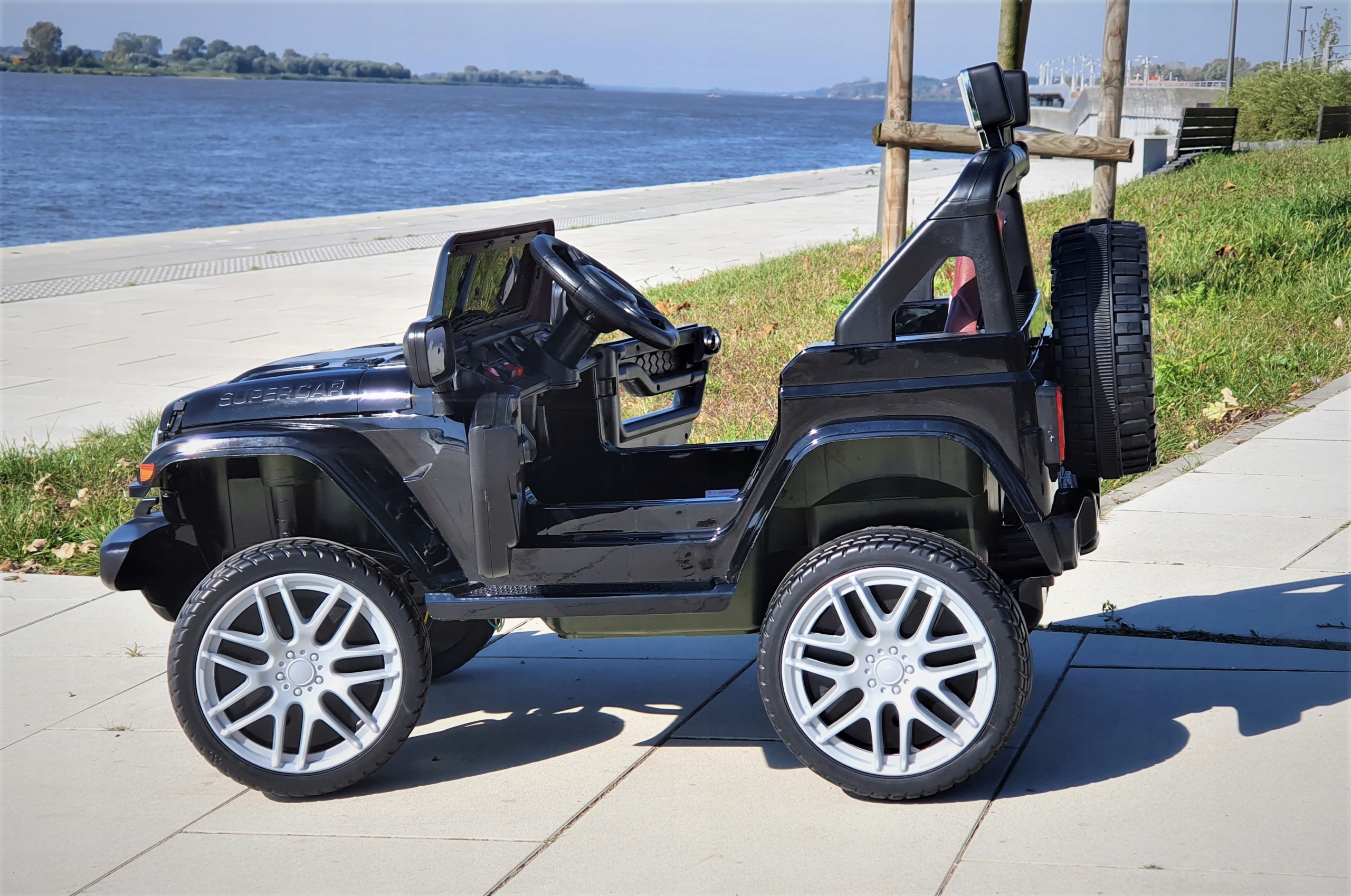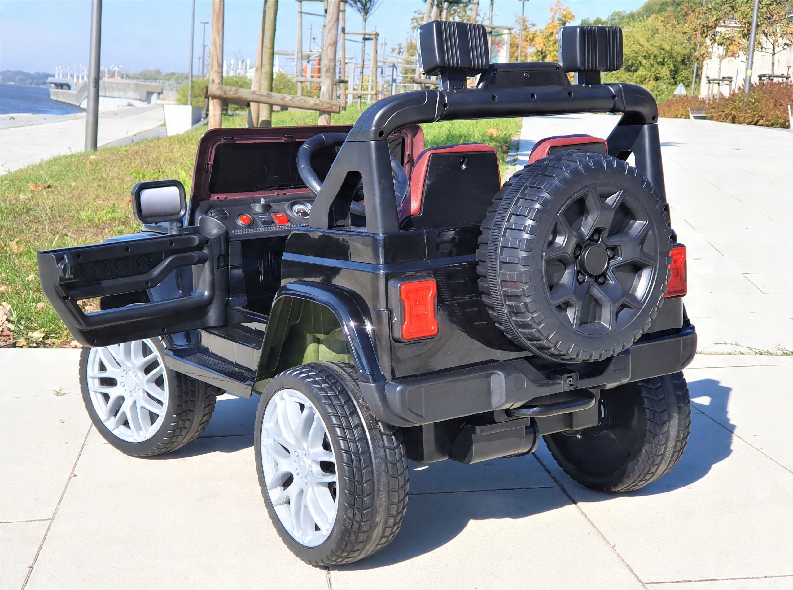 Представляем Вам большой универсальный автомобиль JEEP для детей с полным приводом, открывающимися дверями, мягкие колеса из ЭВА и сиденье, обитое двухцветной эко-кожей.И функция качания.Отличное развлечение для детей на долгое время