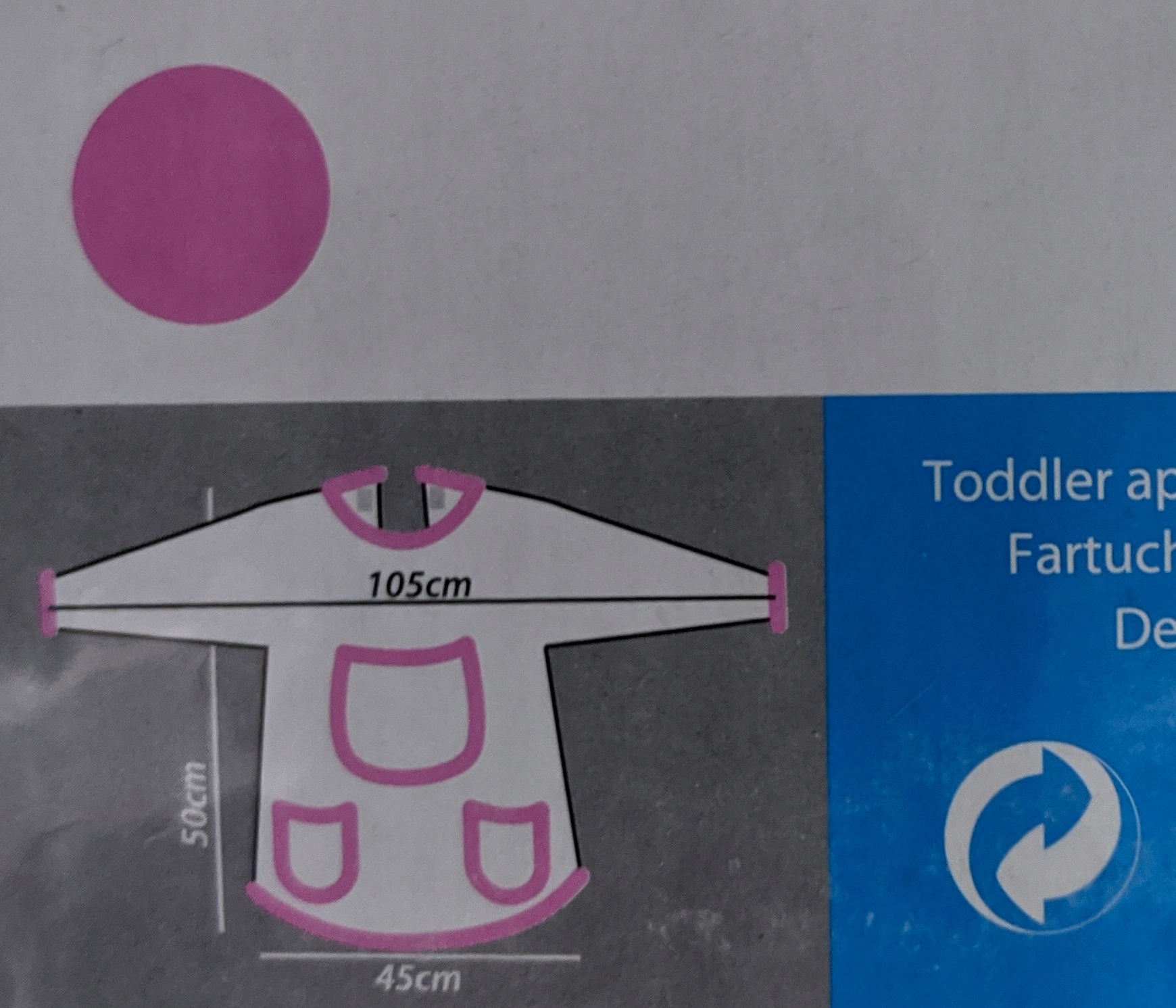 Размеры: 105 см от рукава до рукава, 50 см длина (от плеч до конца фартука) и 45 см ширина внизу