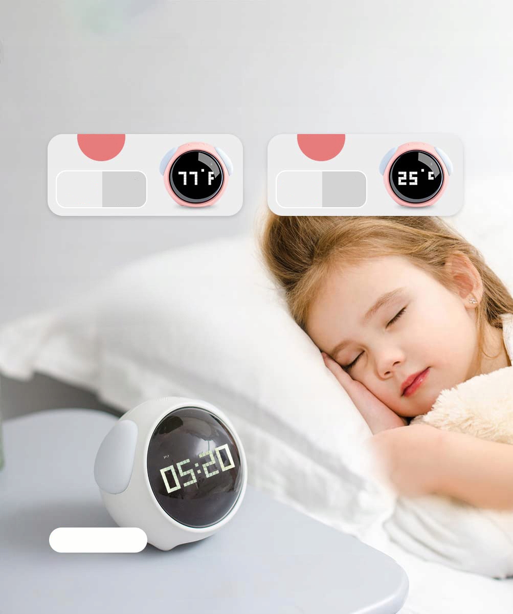 Это полнофункциональный детский будильник со множеством преимуществ. В качестве прикроватного будильника он имеет множество функций для различных нужд, таких как настройки двойного будильника, несколько вариантов мелодий звонка, регулируемая громкость, звуковой ночник, мониторинг температуры и т. д. В начале дизайна были добавлены некоторые интересные атрибуты, которые могут служить игрушкой, такие как милый внешний вид щенка и различные выражения. Его можно подарить детям в виде фигурок животных. И самое большое преимущество заключается в том, что это практичная игрушка, которая просыпается вместе с вашим ребенком каждый день, и ваш ребенок с меньшей вероятностью бросит ее из-за скуки.