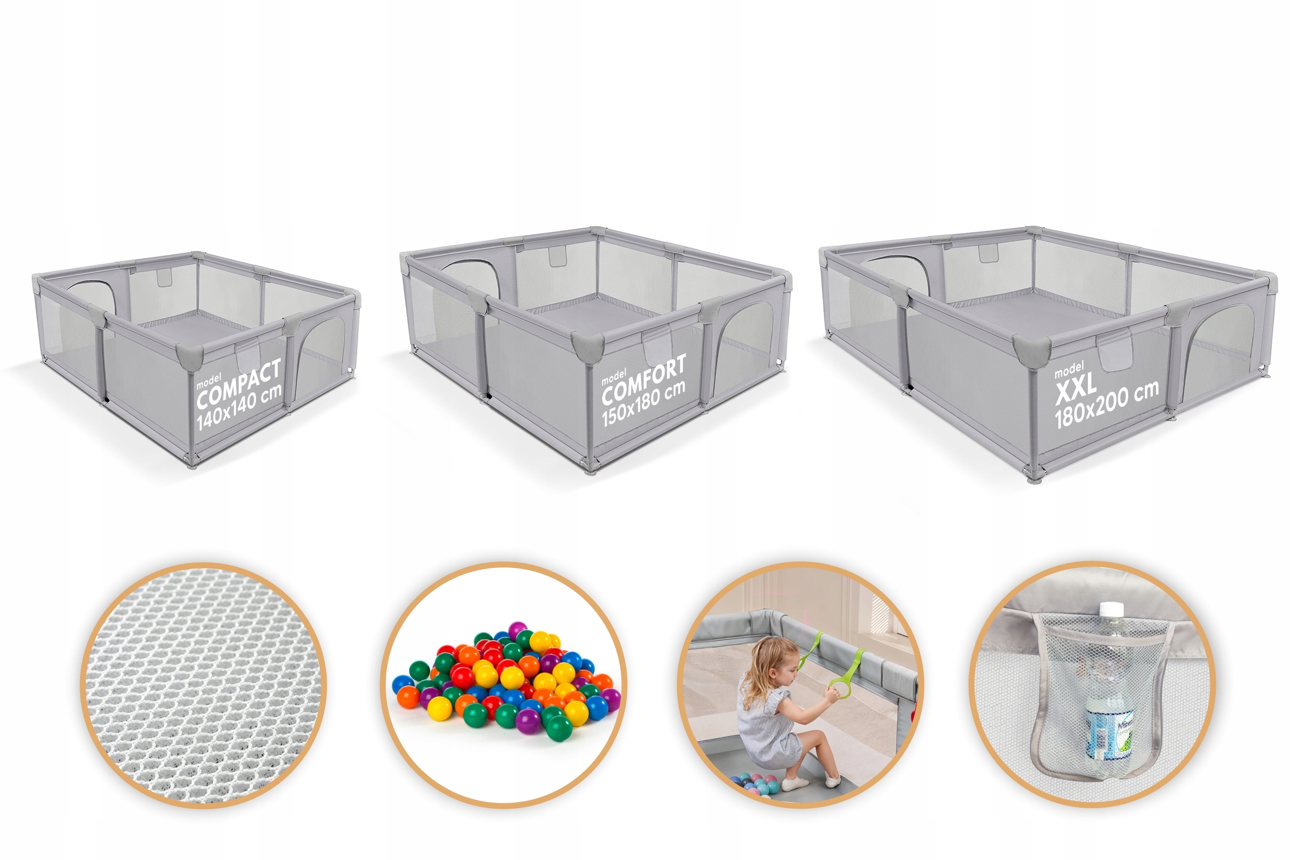 - Light playpen с размерами 150 x 180 x 65 см