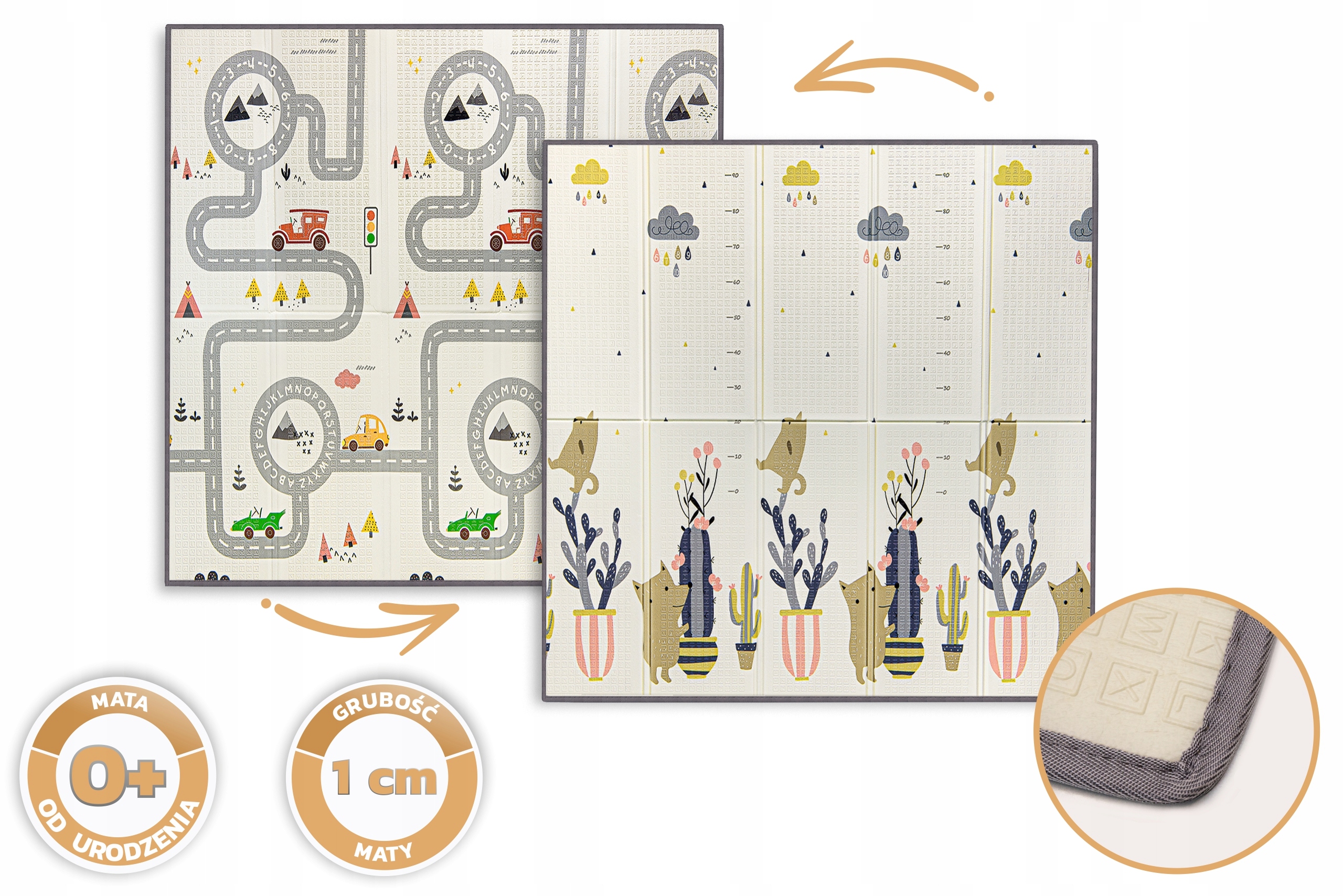 коврик изготовлен из без запаха, пены XPE высочайшего качества, безопасная для вашего малыша. Благодаря толстой пене (1 см) мат прекрасно поглощает ребенка, прежде чем падать на твердый пол и изолировать перед холодной землей.