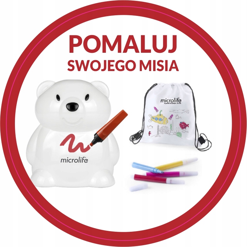 Пневмопоршневой ингалятор Microlife NEB 400 создан специально для детей, чтобы сделать процедуру ингаляции более приятной и комфортной. Профессиональный небулайзер NEB 400, спрятанный в удобном для детей корпусе в форме плюшевого мишки, обеспечивает быстрое, бесшумное и безопасное распыление. Эффективно распыляет все стандартные растворы для ингаляций. Предназначен для лечения заболеваний верхних дыхательных путей, таких как: ринит, глотки и гортани, синусит и голосовое истощение. Кроме того, он идеально подходит при заболеваниях легких, бронхов и астмы. Кроме того, в рамках акции в набор добавлен набор смываемых фломастеров, с помощью которых ребенок сможет раскрасить свой ингалятор и рюкзак плюшевого мишки.