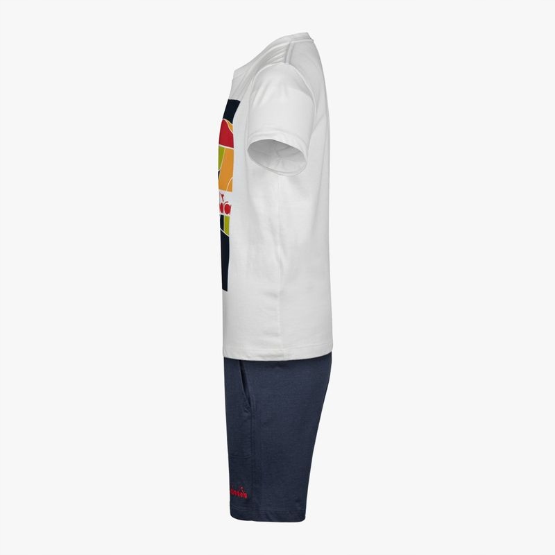 Детский костюм Diadora Jb. SS Set Fregio Junior - футболка обычного кроя с короткими рукавами и круглым вырезом и шорты-бермуды в тон. Комплект из легкого и воздушного хлопка идеально подойдет для занятий спортом и тренировок.
