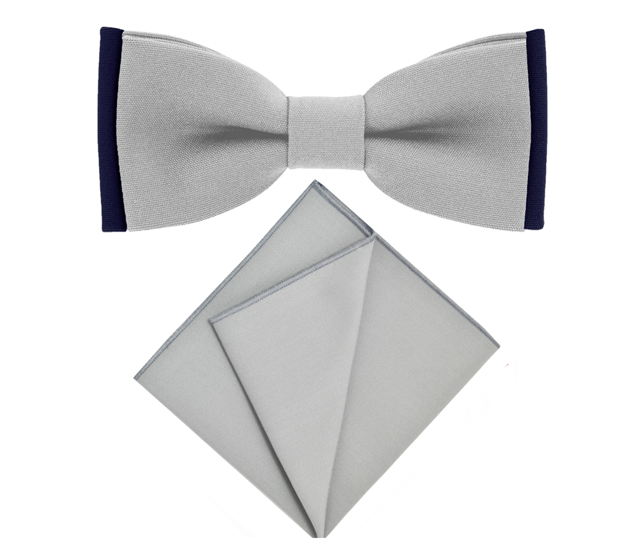Галстук-бабочка светло-серого цвета с темно-синим и светло-серым нагрудным платком