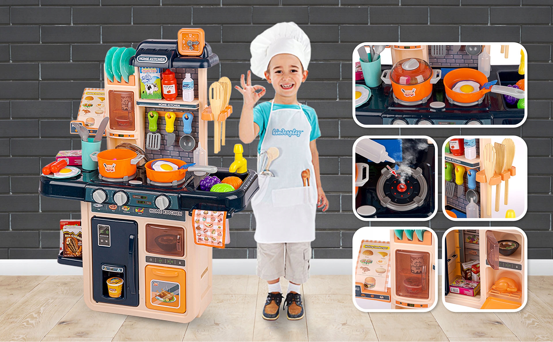ДЕТСКИЙ КУХОННЫЙ КОМПЛЕКТ СВЕТ, ЗВУК, ВОДА, ПАР