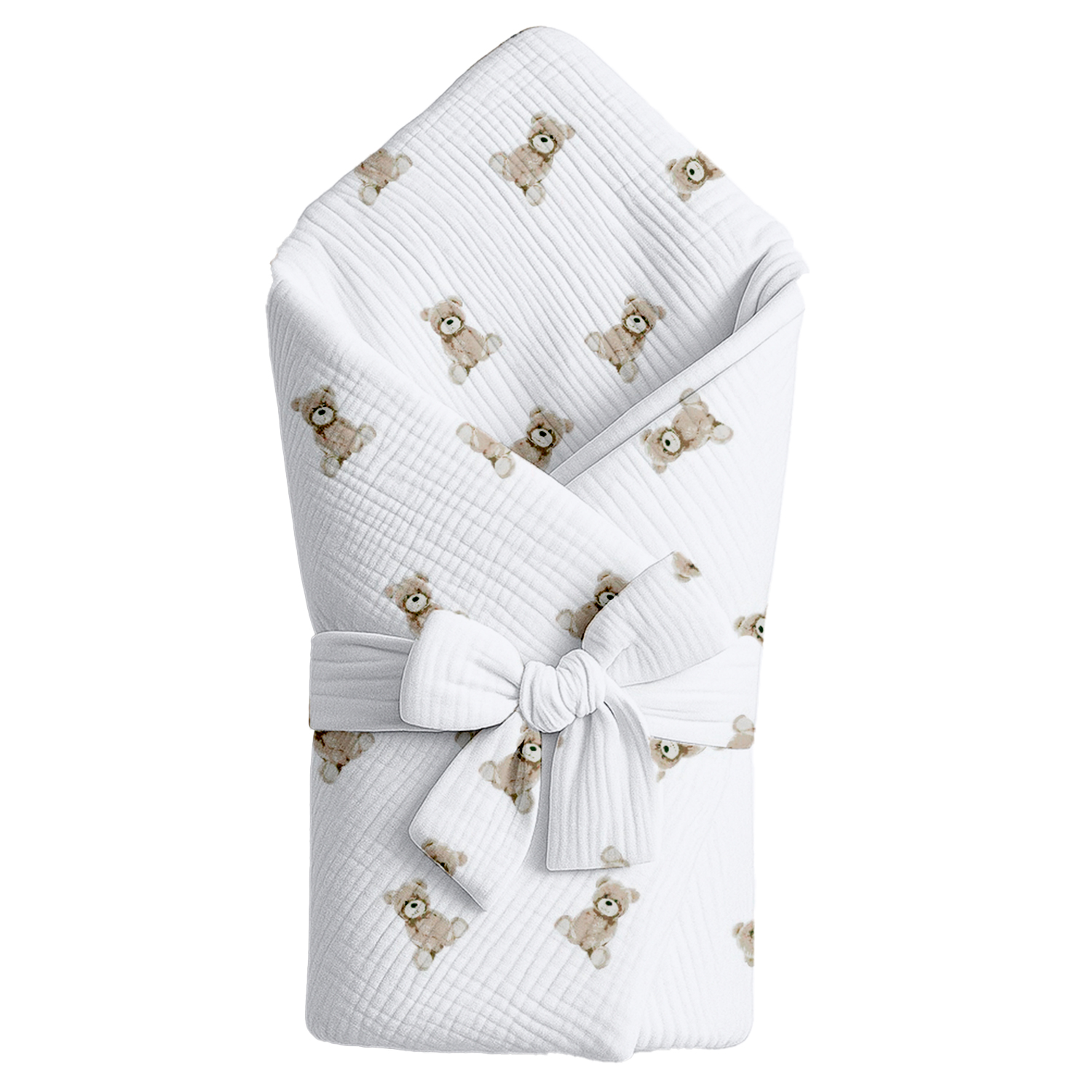 Детская пеленка с бантиком из жатого муслина Четыре слона 75х75 см - Мишка Тедди