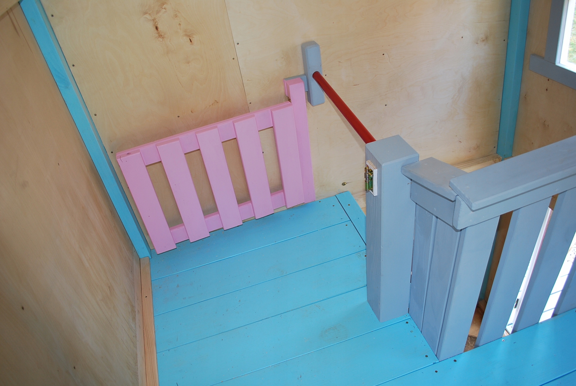 - детская площадка включает в себя: двухэтажный домик и балкон со скалодромом