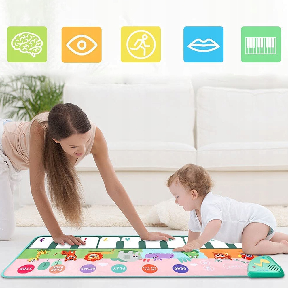 🎶10 музыкальных кнопок — Помимо сэмплов песен, коврик содержит 10 клавиш, каждая из которых отвечает за отдельный звук. Различные звуки позволят вашему ребенку полностью погрузиться в музыкальный мир.