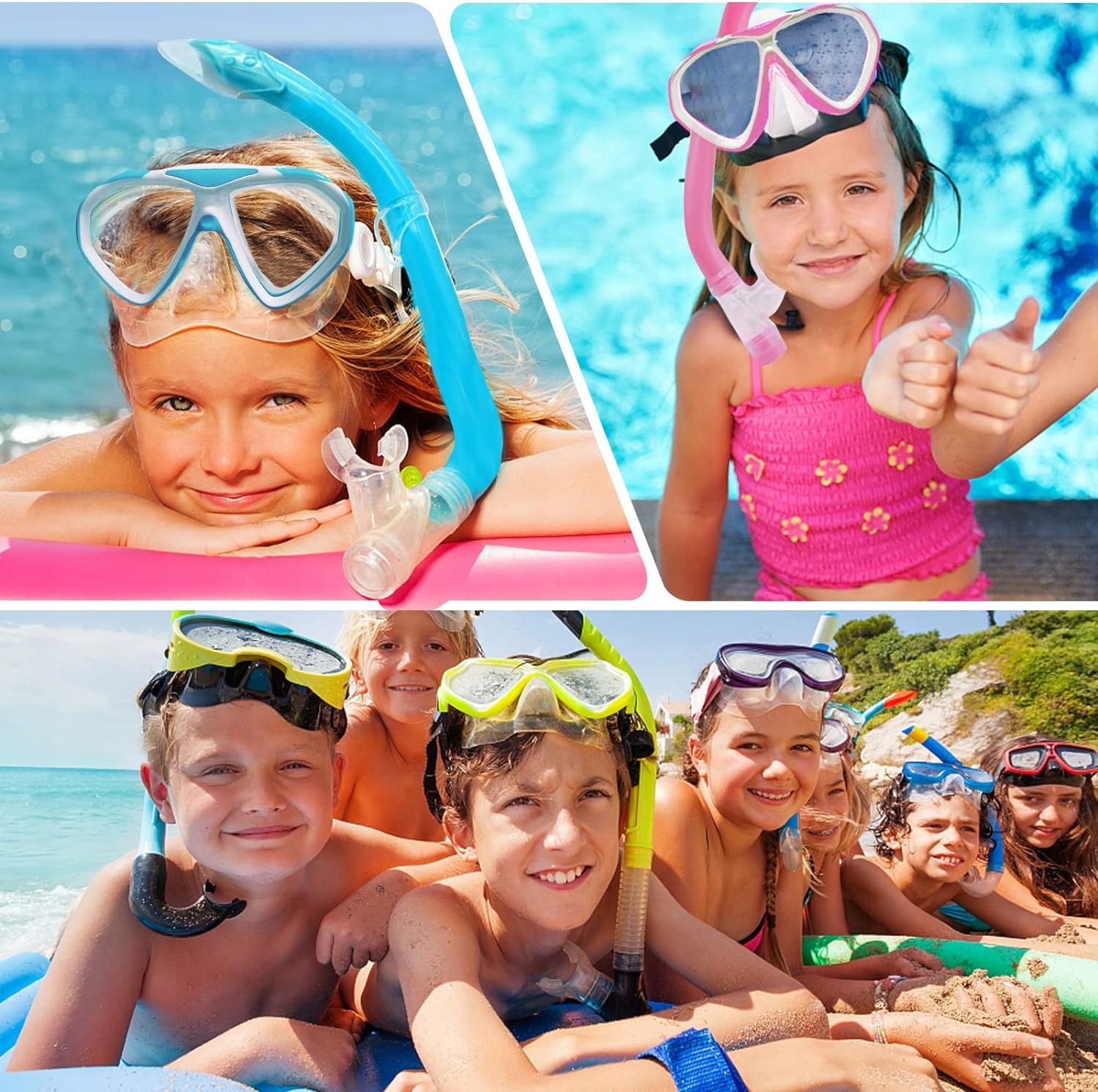 - Очки для плавания для детей 4-12 лет – комплект детских очков для дайвинга с очень гибким силиконовым ремешком на голову, обеспечивающим эффективность коррекция формы лица детей 4-12 лет и подростков. Очки для дайвинга очень удобны и не оказывают слишком сильного давления на лицо.