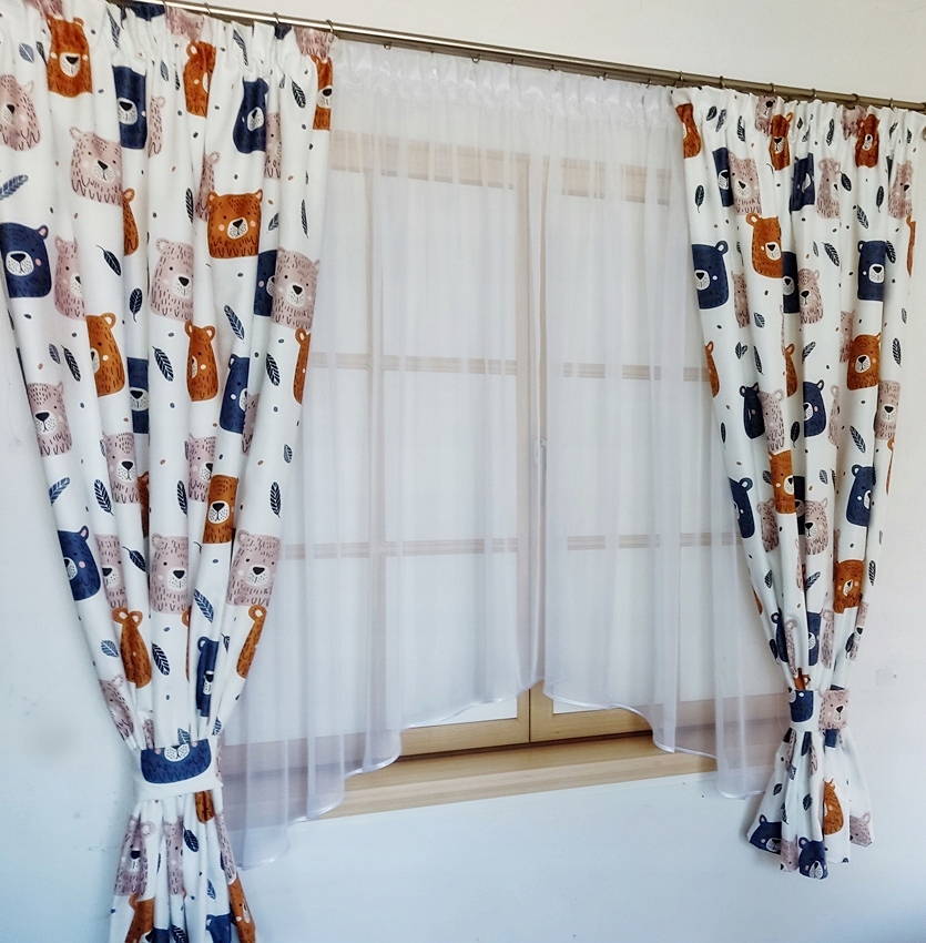 - - Набор штор, сшитые из декоративной ткани Миласа с печатью с плюшевым мишками