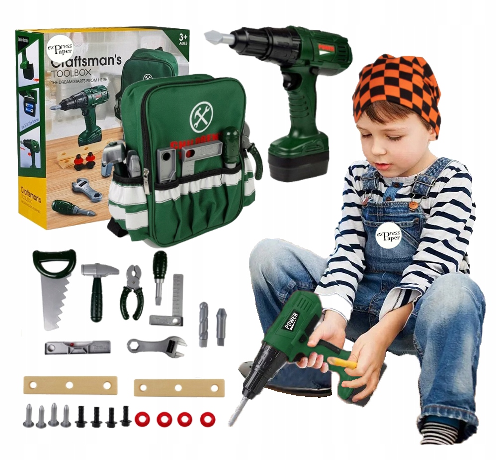 ▶️ Стиль игрушки относится к реальным инструментам в сочетании с простыми нейтральными цветами, благодаря которым ребенок почувствует себя настоящим энтузиастом DIY. Большим преимуществом игрушек является то, что их размеры адаптированы под детские руки, что значительно облегчает их использование.