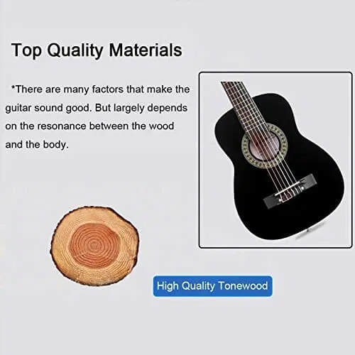 • Чистый и приятный звук: звучит тепло и ясно, намного лучше, чем у других дешевых гитар для начинающих, и очень близок к гитарам высокого класса! Выгнутая задняя часть обеспечивает более длительный сустейн и более полное звучание.
