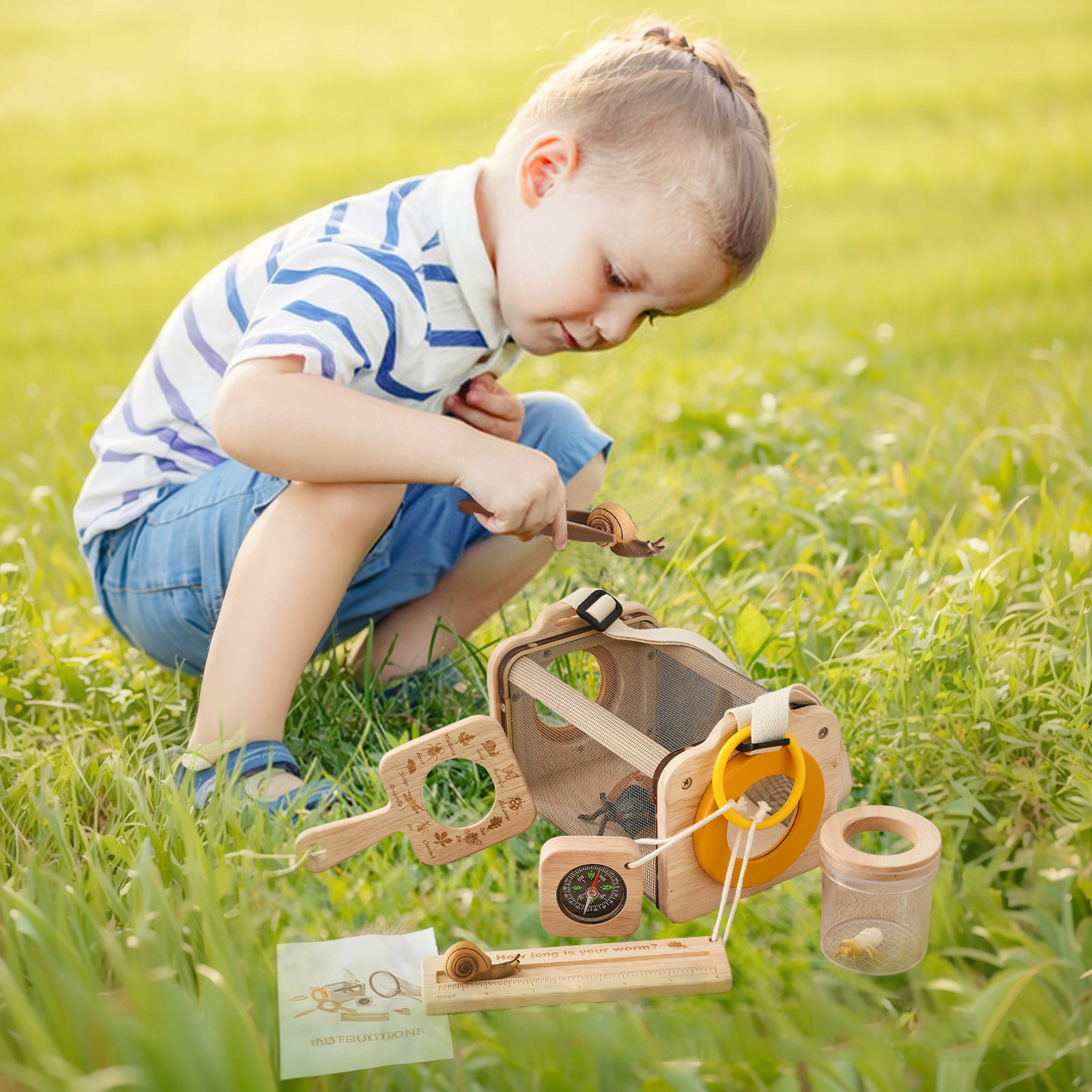 НАБОР МАЛЕНЬКИЙ ИССЛЕДОВАТЕЛЬ ДЛЯ ДЕТЕЙ ДЕРЕВЯННАЯ РАЗВИВАЮЩАЯ ПРИРОДНАЯ ИГРУШКА