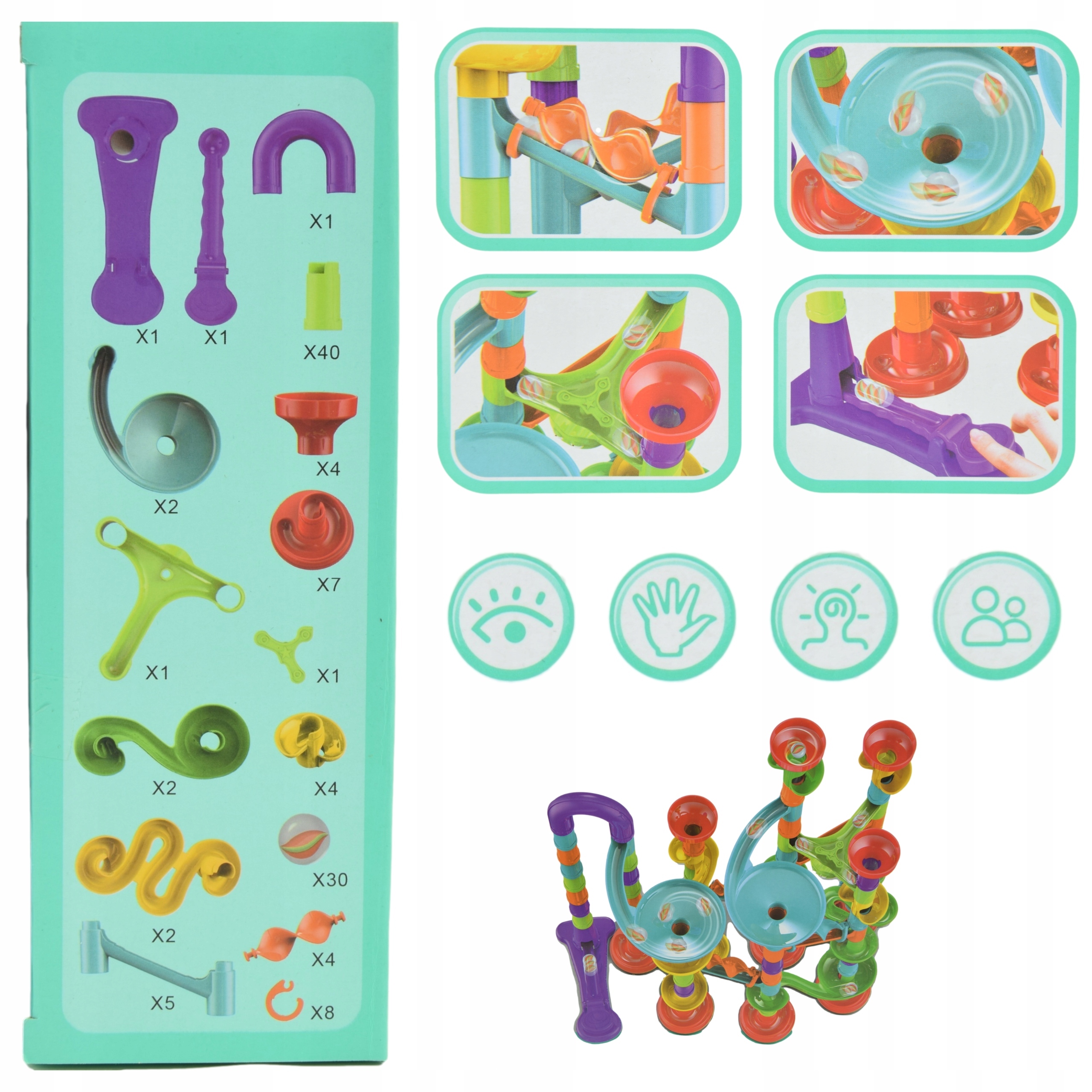 ✅Возможность воссоздать модели, представленные на упаковке, или самостоятельно соединить элементы: горки, мосты, колонны, спирали, катушки или дымоходы, либо спроектировать свою, индивидуальную дорожку и восхищаемся тем, как ловко движутся по нему шарики!