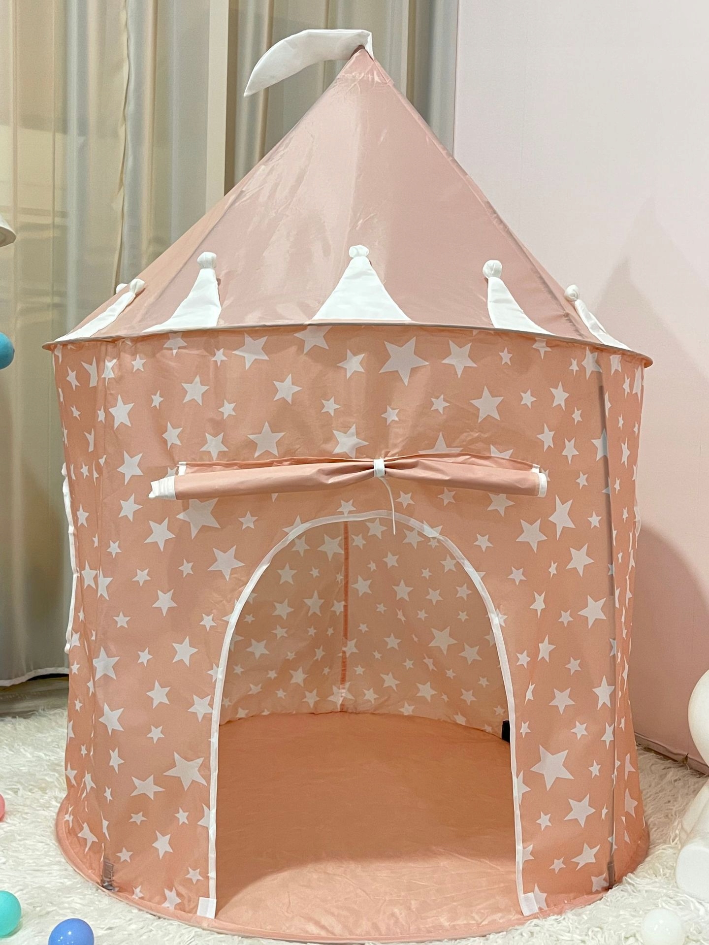 - Необычная палатка для детских игр - круглый высокий дворец в розовых тонах.
