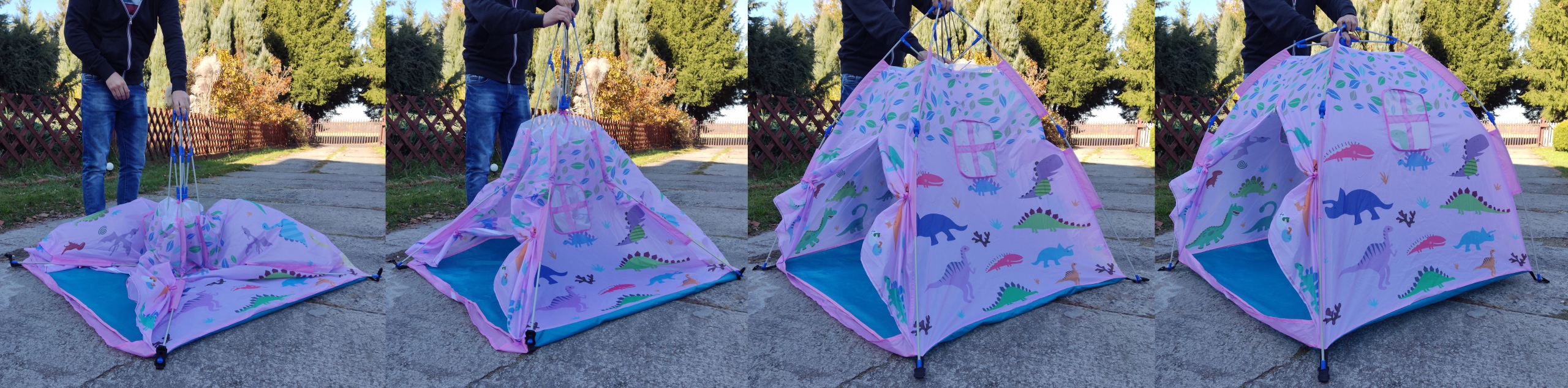 ДЕТСКИЙ ПАЛАТОЧНЫЙ ДОМ С СИСТЕМОЙ БЫСТРОГО СКЛАДЫВАНИЯ - ДИНОЗАВРЫ Розовый