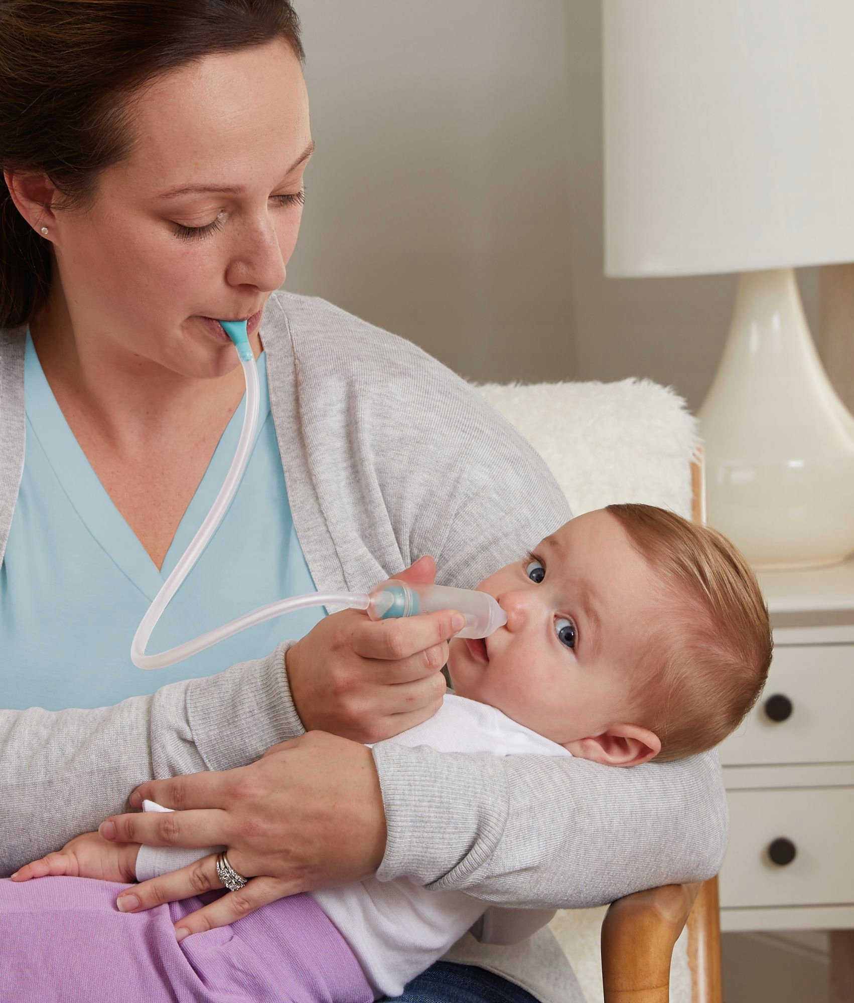Быстро и бережно очищает заложенный нос