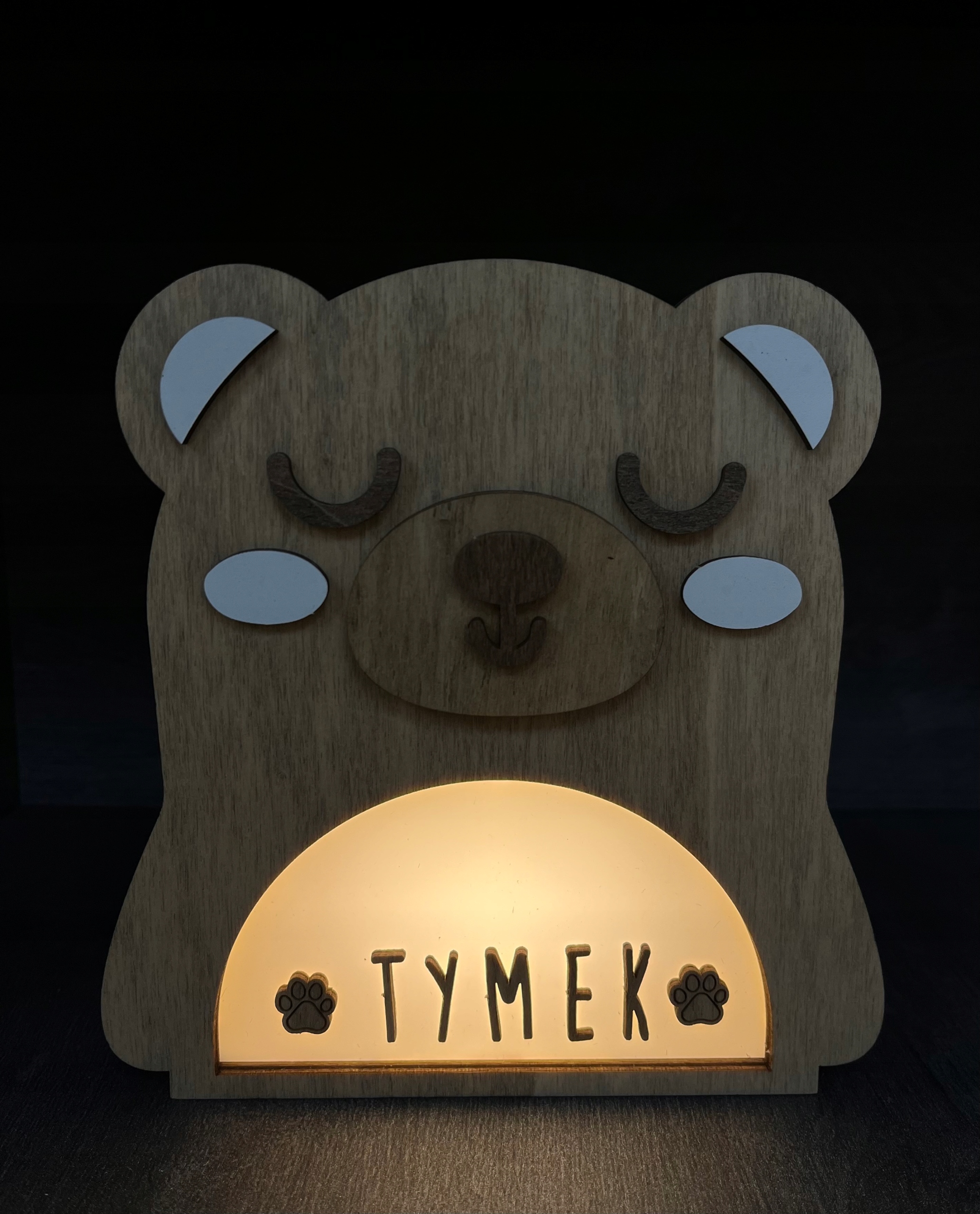ДИТЯЧИЙ НІЧНИК LED, НАТУРАЛЬНЕ ДЕРЕВО, НА АКУМУЛЯТОРІ І USB, ВЕДМЕДИК + БУКВИ