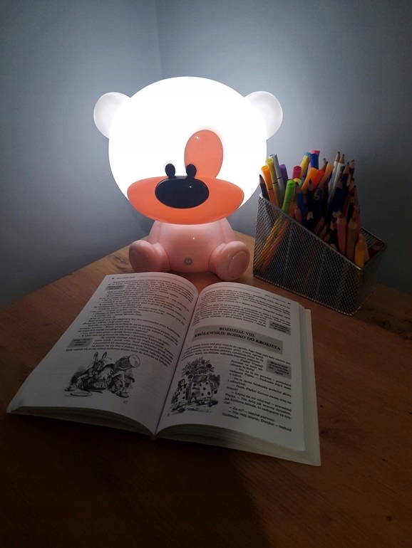 В детской комнате, как никакой другой, будет полезно ночное освещение, благодаря которому мы сможем осветить все пространство ребенка. Малыши не любят засыпать в полной темноте. Внешний вид светильника напоминает дружелюбную игрушку, верного спутника для повседневных игр и путешествий в страну воображения. Однако светодиодная подсветка делает его красивым украшением, а также ночником. Подсвеченная головка дает мягкий белый свет, который облегчает засыпание и создает в комнате дружелюбную атмосферу. Светильник можно питать как от розетки, так и от USB-кабеля (входит в комплект), например, подключив его к ноутбуку, зарядному кубу или повербанку. Лампа имеет три уровня мощности света, их можно менять с помощью переключателя на брюшке лампы.