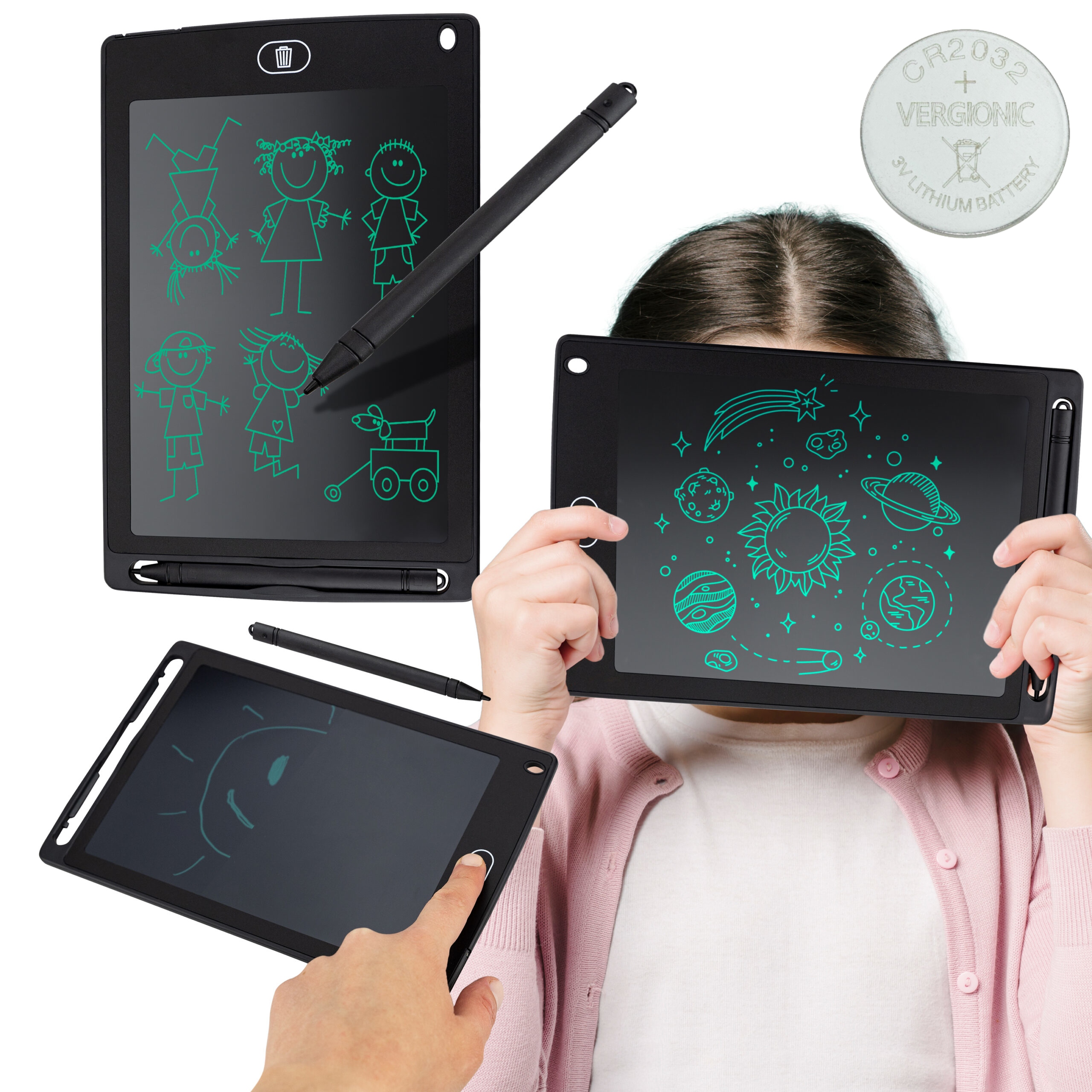 Он очень тонкий и изготовлен из легкого материала. Работает от батареи CR2025 напряжением 3 В, которой достаточно для создания до 50 000 рисунков! Таким образом, вы можете брать планшет куда угодно и использовать его в любых условиях, не беспокоясь об источнике энергии. Использование специального типа дисплея делает планшет очень энергоэффективным. Он также безопасен для глаз и не нагружает их чрезмерно. В комплект также входит специальный стилус!